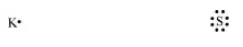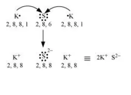 Sulphur (S) requires 2 more electrons to complete its octet. Potassium (K) requires one electron more than the nearest noble gas i.e., Argon. Hence, the electron transfer can be shown as: