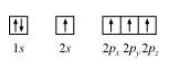 $\underline{N}$ : There are five valence electrons in an atom of nitrogen. Hence, the Lewis dot structure is: $: \ddot{\mathrm{N}}$.