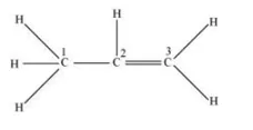 $\mathrm{C}_{1}$ is $s p^{3}$ hybridized, while $\mathrm{C}_{2}$ and $\mathrm{C}_{3}$ are $s p^{2}$ hybridized.