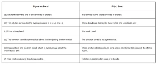 Solution. The following are the differences between sigma and pi-bonds: