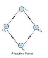 The magnitude of the attractive forces is more than that of the repulsive forces. Hence, the two atoms approach each other. As a result, the potential energy decreases. Finally, a state is reached when the attractive forces balance the repulsive forces and the system acquires minimum energy. This leads to the formation of a dihydrogen molecule.