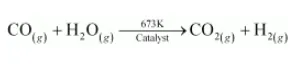 $\mathrm{CO}_{(g)}+\mathrm{H}_{2} \mathrm{O}_{(g)} \underset{\text { Caallst }}{673 \mathrm{~K}}{\longrightarrow} \mathrm{CO}_{2(g)}+\mathrm{H}_{2(g)}$