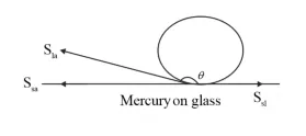 The angle of contact $\theta$ is obtuse if $\mathrm{S}_{\mathrm{sa}}<\mathrm{S}_{\mathrm{la}}$ (from the figure of mercury on glass).