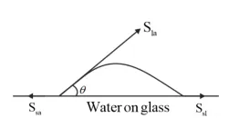 $\mathrm{S}_{\mathrm{la}}, \mathrm{S}_{\mathrm{sa}}$, and $\mathrm{S}_{\mathrm{sl}}$ are the interface tensions between the solid-air, liquidair and solid-liquid interfaces. At the line of contact, the surface forces between the three media must be in equilibrium, i.e.,