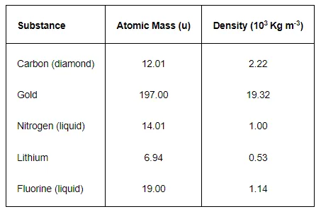 Question.14: Given below are densities of some solids and liquids. Give rough estimates of the size of their atoms: