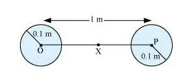 X is the mid point between the spheres. Gravitational force at point X will be zero. This is because gravitational force exerted by each sphere will act in opposite directions.