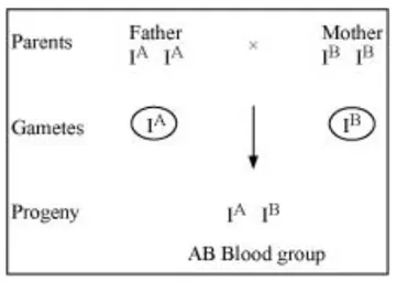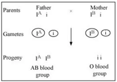 A cross between heterozygous parents will produce progenies with AB blood group $\left(\mathrm{A}^{\mathrm{A}} \mathrm{B}^{\mathrm{B}}\right)$ and $\mathrm{O}$ blood group (ii)