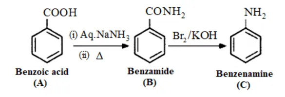 Further, benzamide is formed by heating compound 'A' with aqueous ammonia. Therefore, compound 'A' must be benzoic acid.