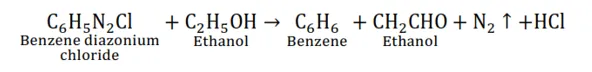 (iv) $\mathrm{C}_{6} \mathrm{H}_{5} \mathrm{~N}_{2} \mathrm{Cl}+\mathrm{C}_{2} \mathrm{H}_{5} \mathrm{OH} \rightarrow$
