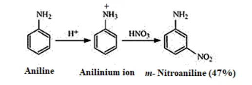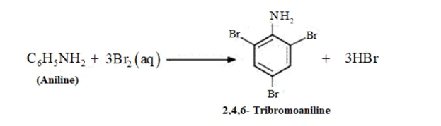 An aniline $-N H_{2}$ is $+M$ group and it is a ring activating group for electrophilic attack and ortho-para directory. So, electrophile $-N O_{2}^{+}$attack at ortho-para. $2,4,6$-Tribromo aniline is formed, which is a white crystalline solid.