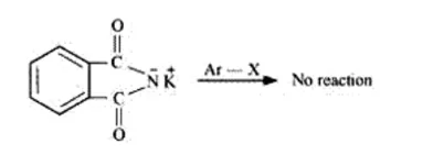 But aryl halides do not undergo nucleophilic substitution with the anion formed by the phthalimide because positive charge on the benzene ring is highly unstable due to the double bond character.