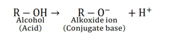 Similarly, alcohol loses a proton to give alkoxide ion.