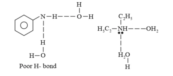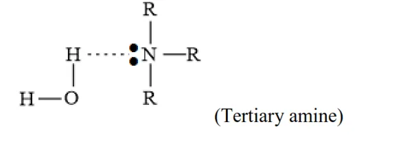 Very less hydrogen bonding in tertiary amine due to steric hindrance of alkyl group (-R).