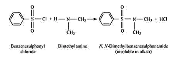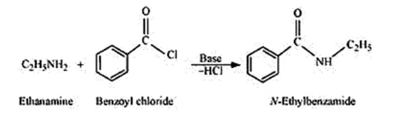 When amines react with benzoyl chloride, the reaction is also known as benzoylation. And this is followed by an electrophile substitution reaction
