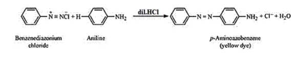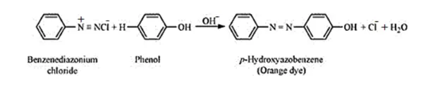 The reaction in which two aromatic rings are joined through the $-N=$ $N$ - bond is known as coupling reaction. Arenediazonium salts such as benzene diazonium salts react with phenol or aromatic amines to form coloured azo compounds.