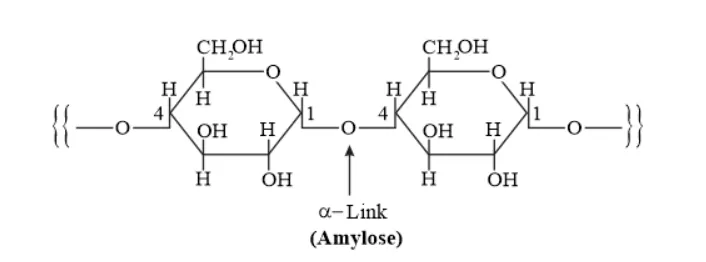 Amylose is a long linear chain of $\alpha-D-(+)-$ glucose units joined by $C 1-C 4$ glycosidic linkage ( $\alpha-$ link).