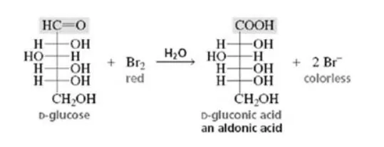 (ii) When D-glucose is treated with $\mathrm{Br}_{2}$ water (mild oxidising agent), D- gluconic acid is produced.