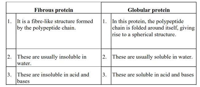 Question 15. Differentiate between globular and fibrous proteins.