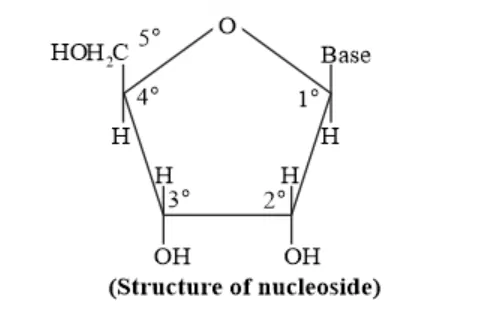 Solution: A nucleoside is formed by the attachment of base to $1^{\prime}$ position of sugar.