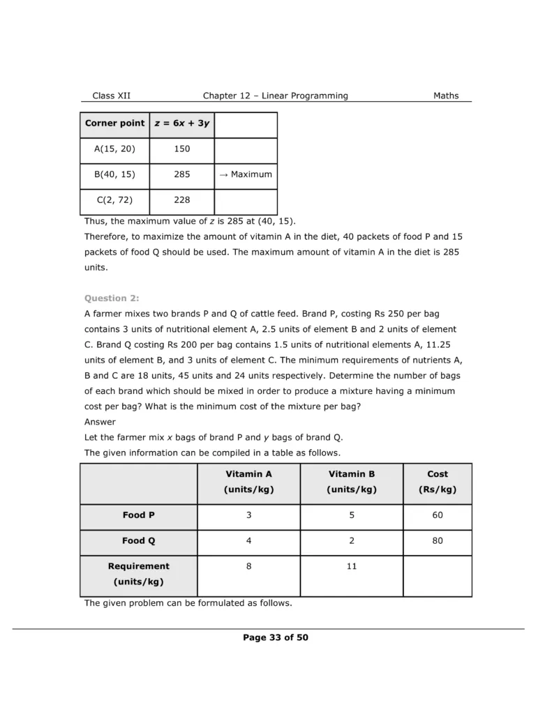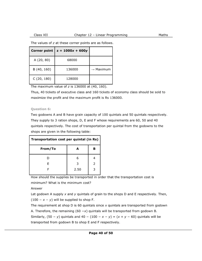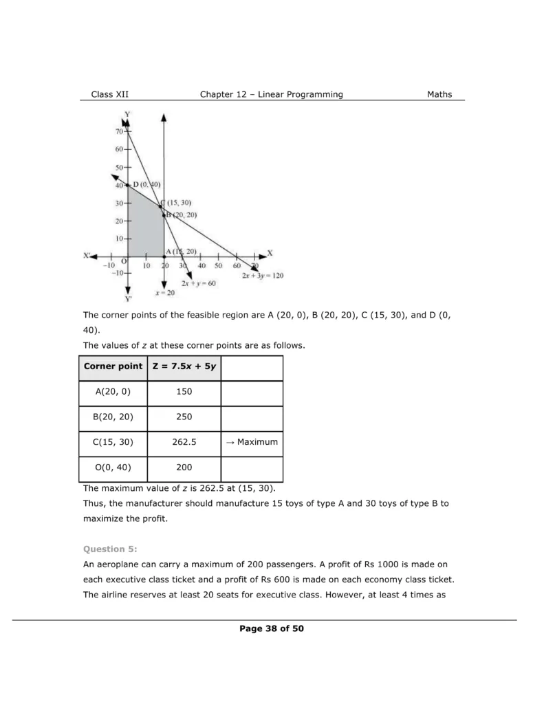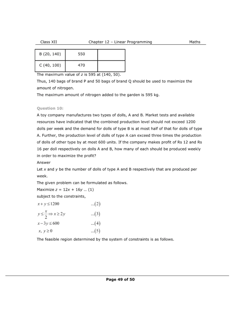 Download The PDF of NCERT Solutions for Class 12 Maths Chapter 12 "Linear Programming"