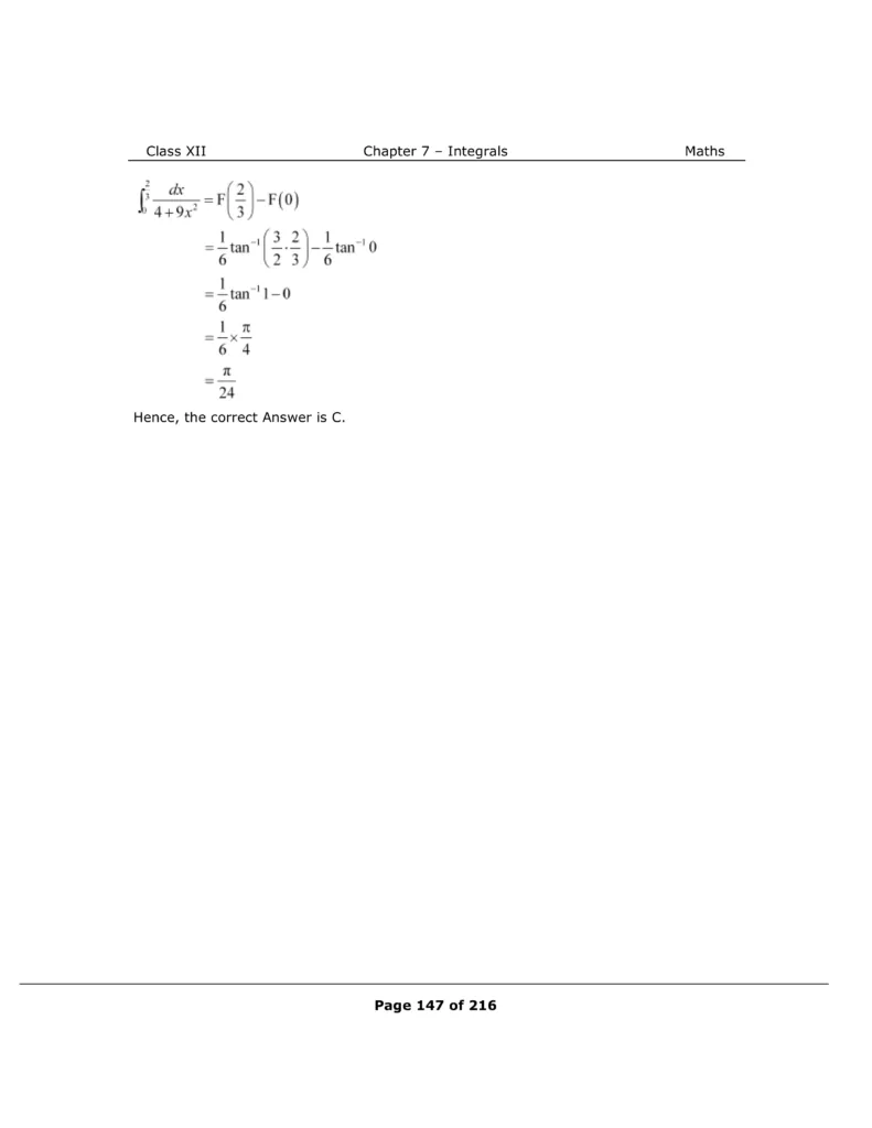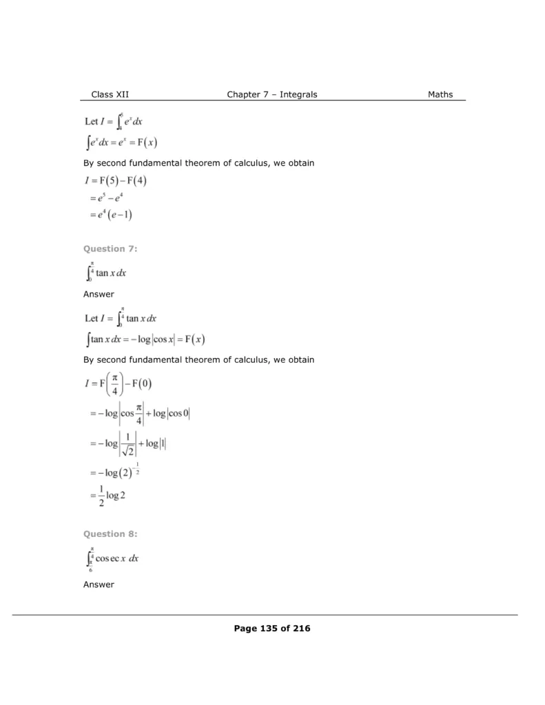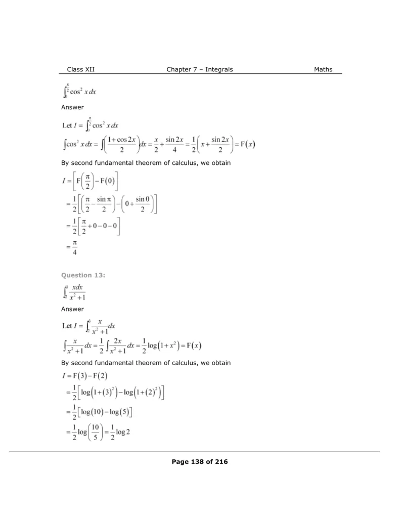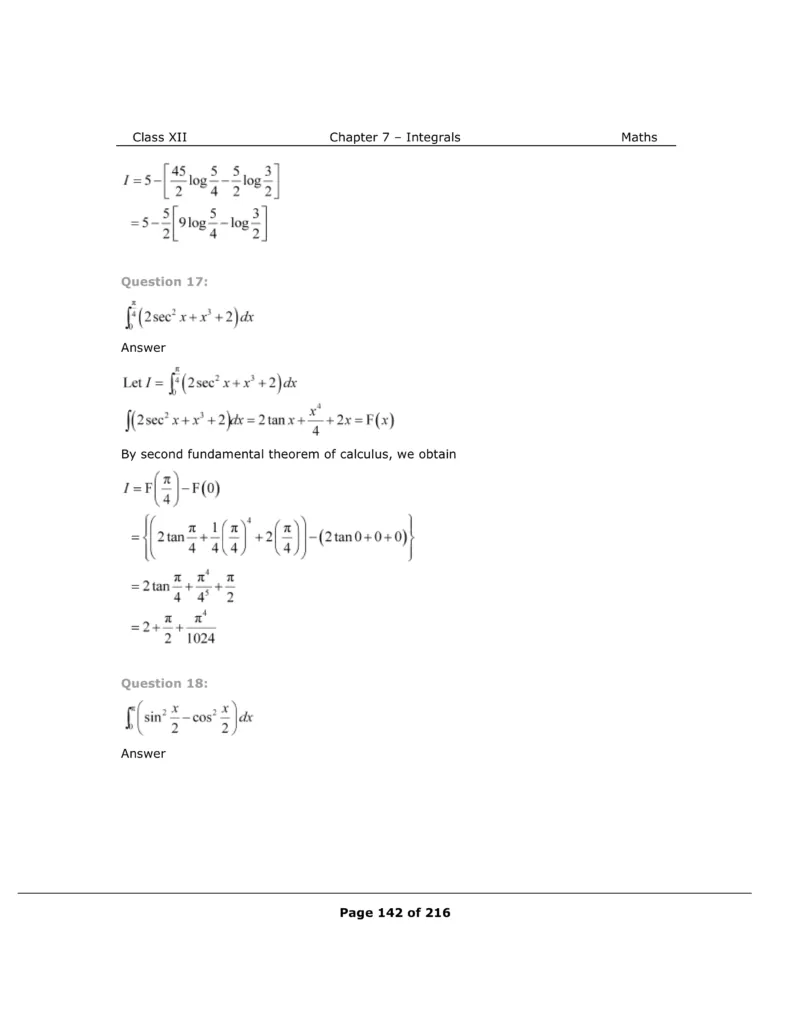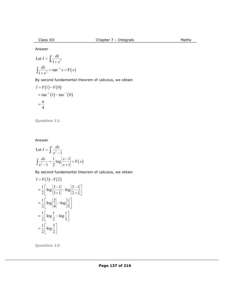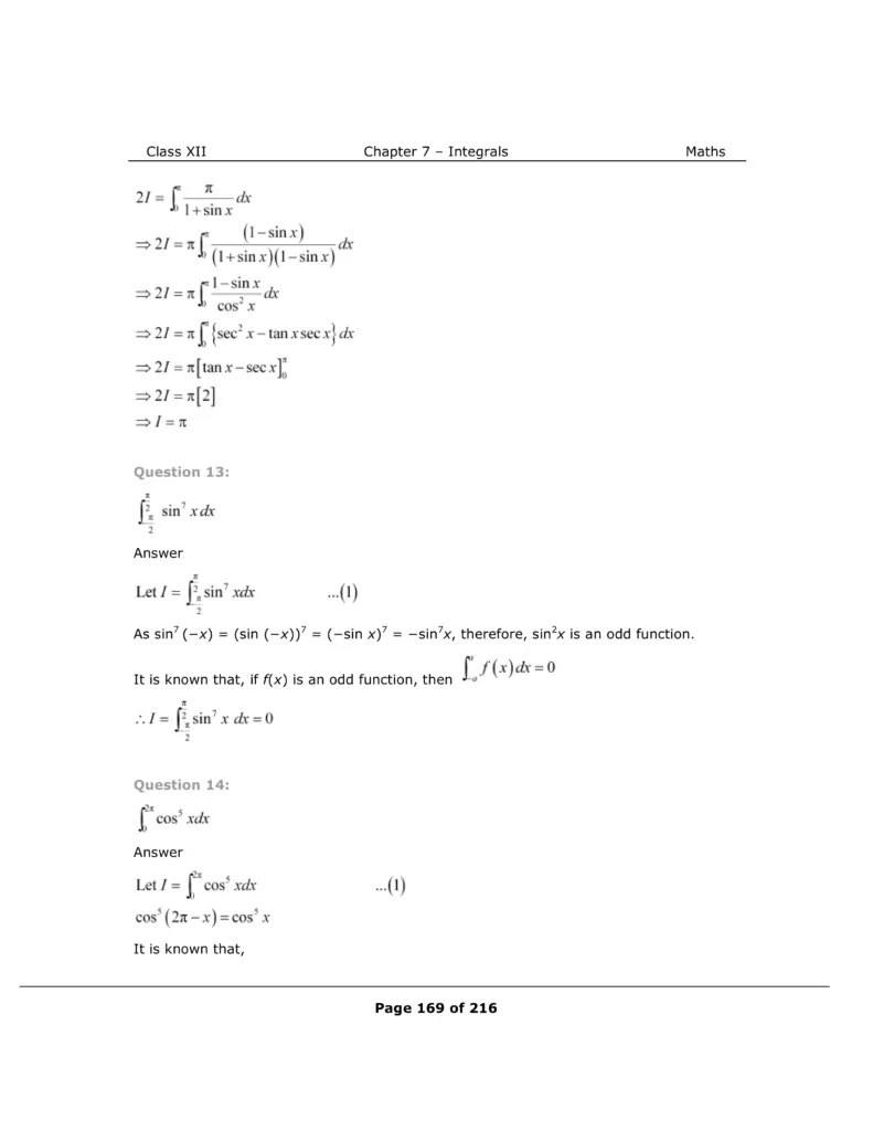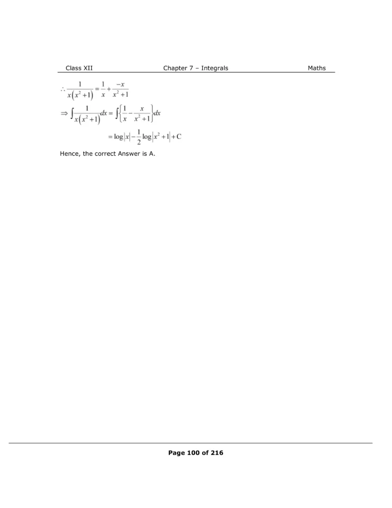 Download The PDF of NCERT Solutions for Class 12 Maths Chapter 7 "Integrals"
