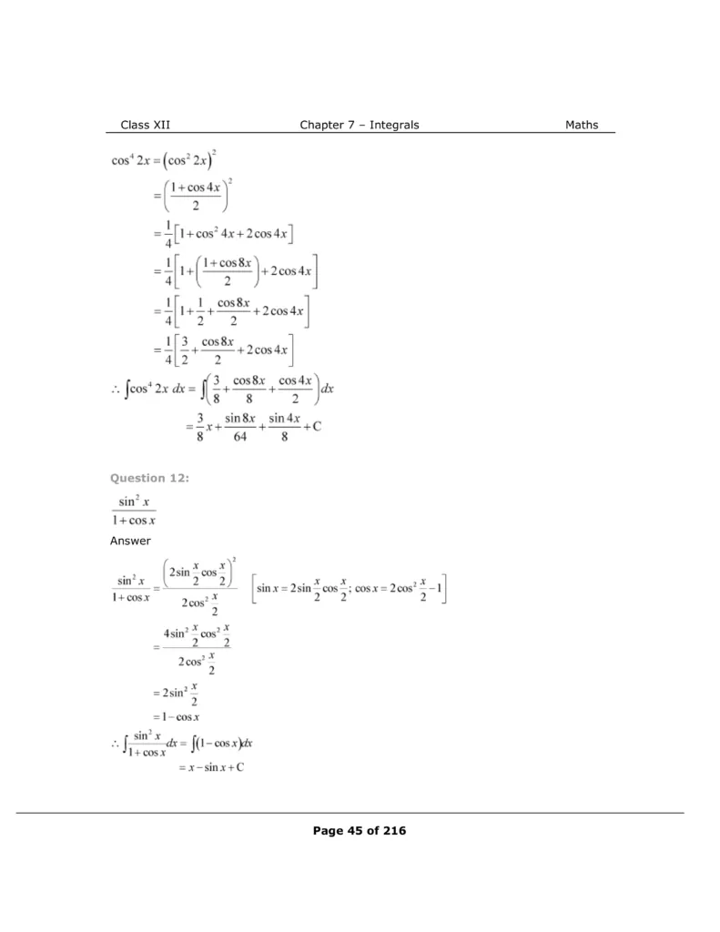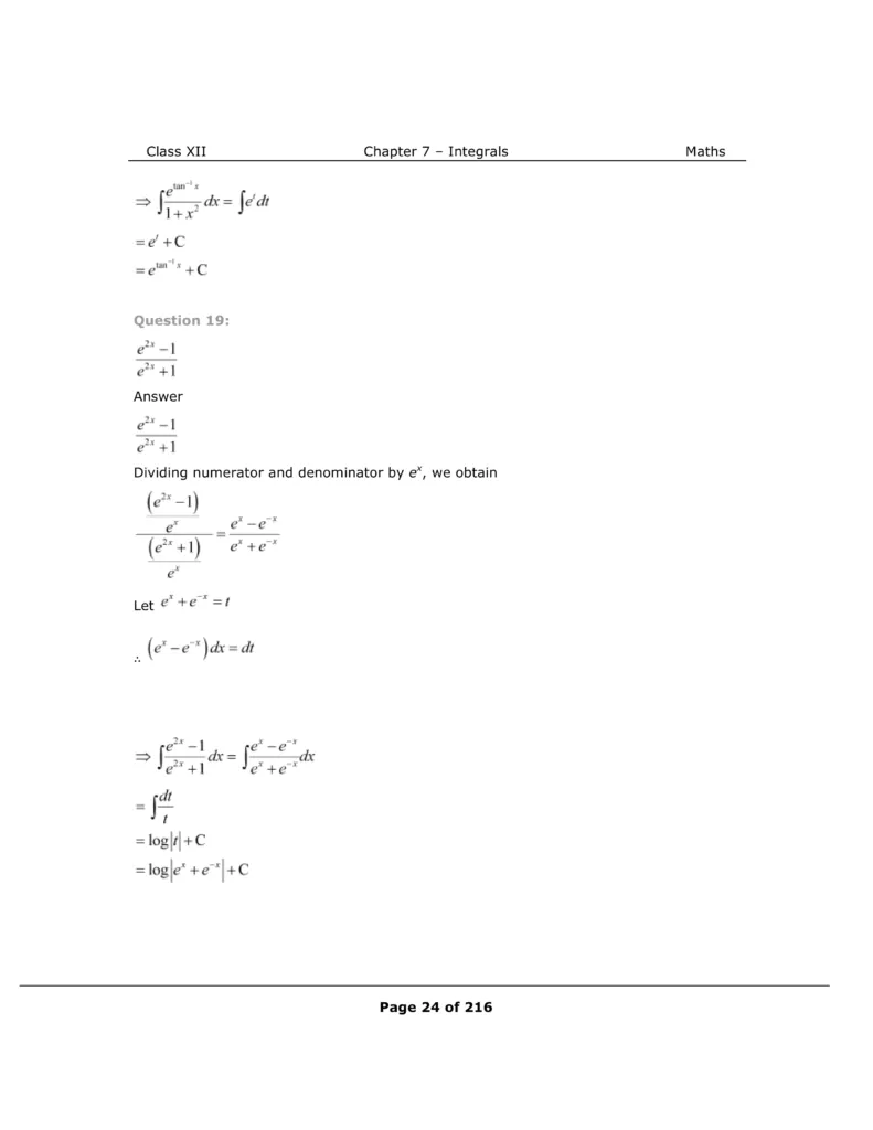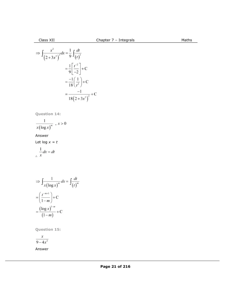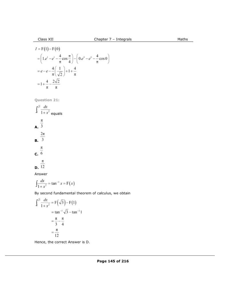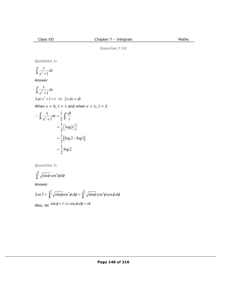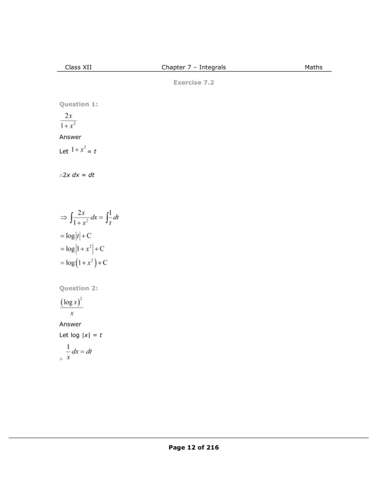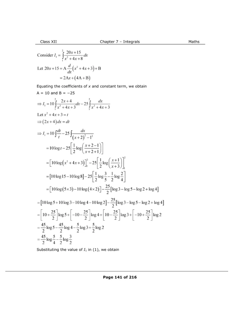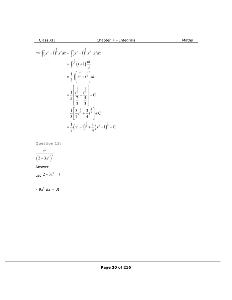 Download The PDF of NCERT Solutions for Class 12 Maths Chapter 7 "Integrals"