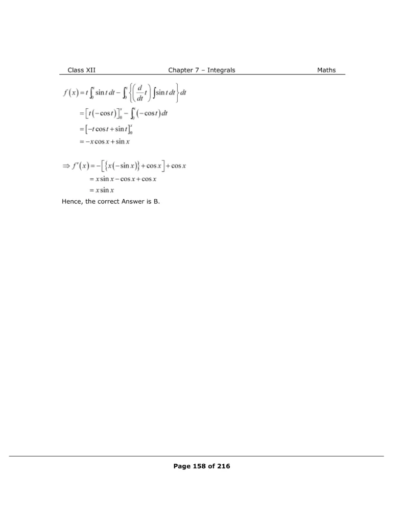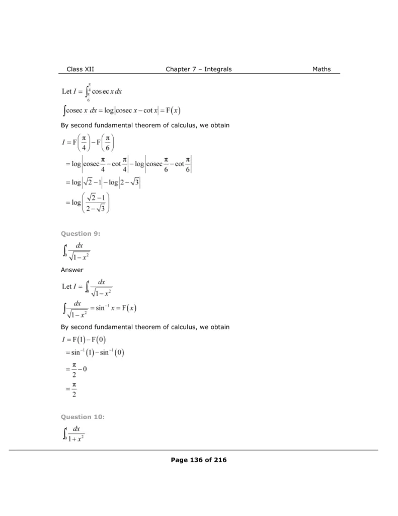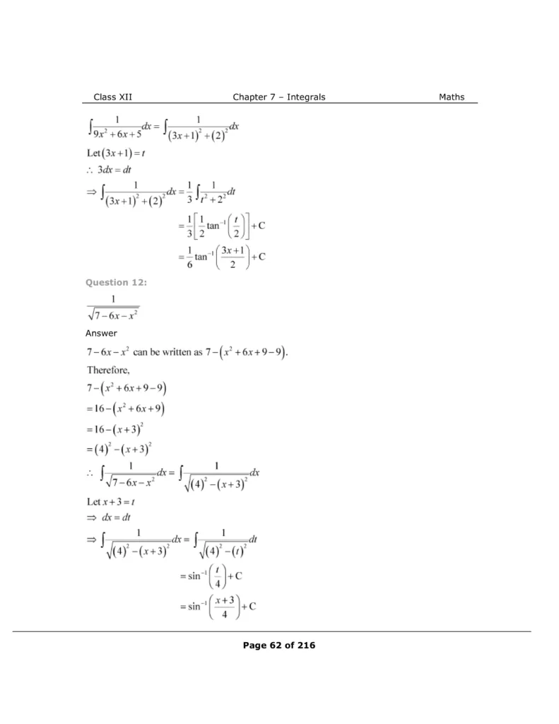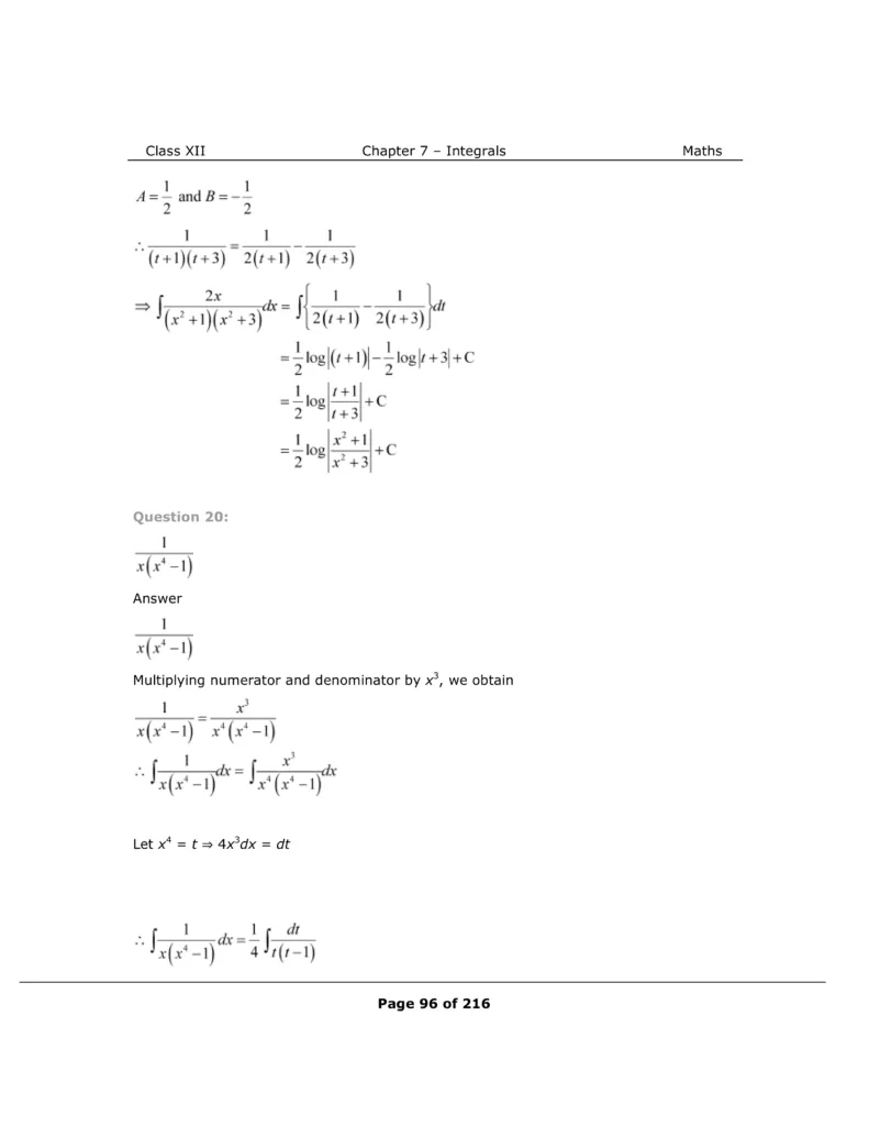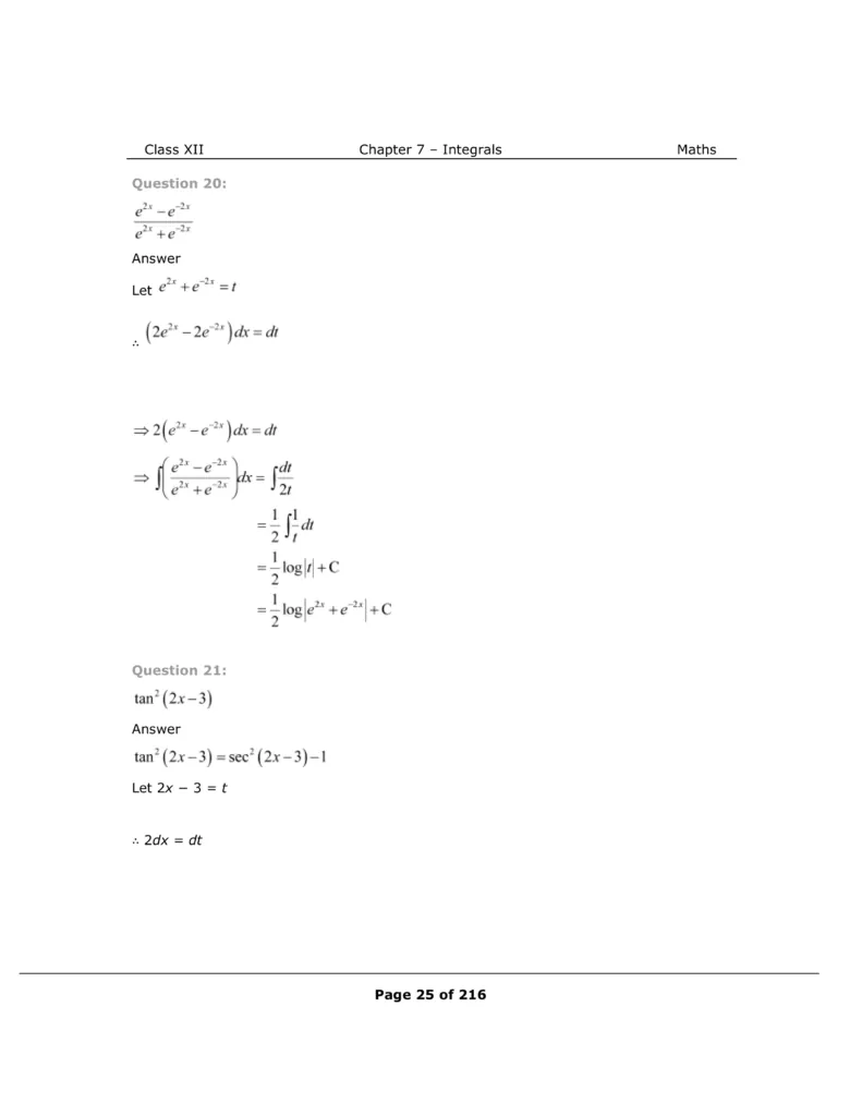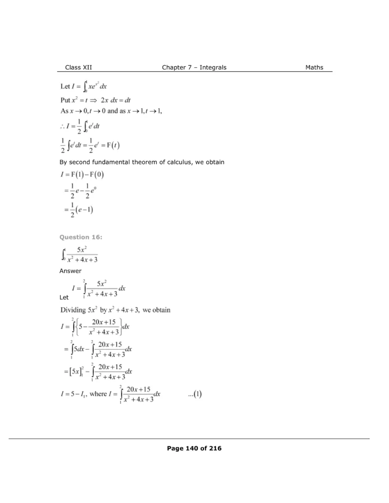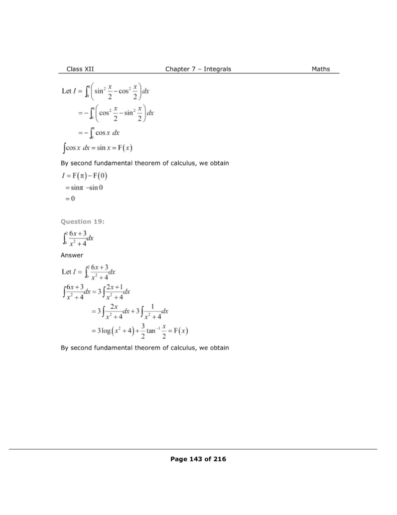 Download The PDF of NCERT Solutions for Class 12 Maths Chapter 7 "Integrals"