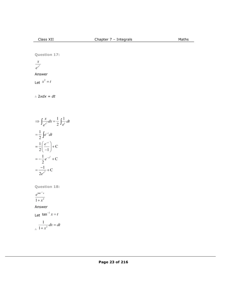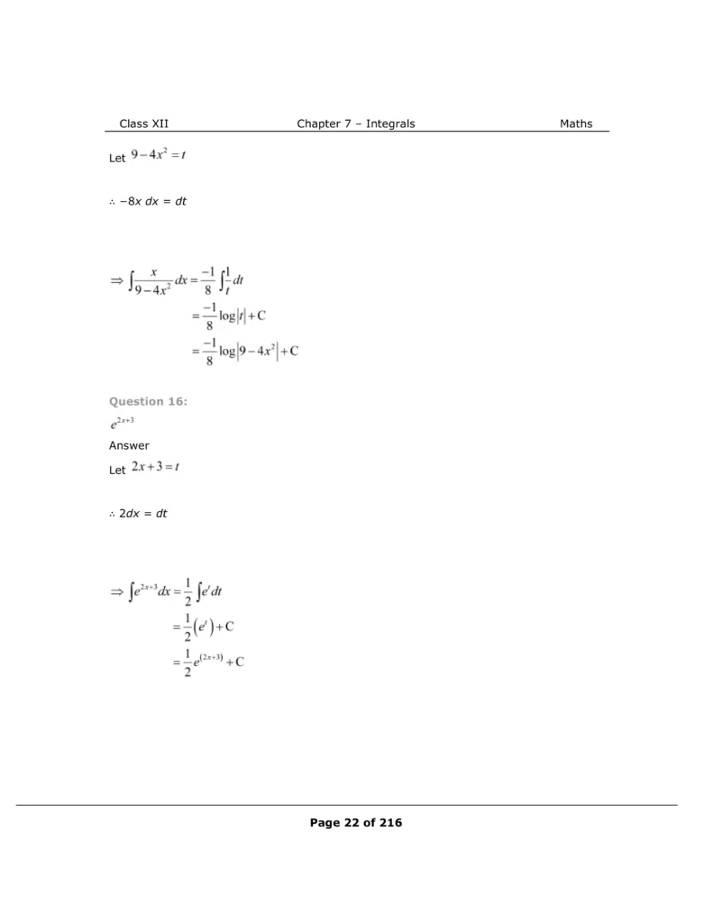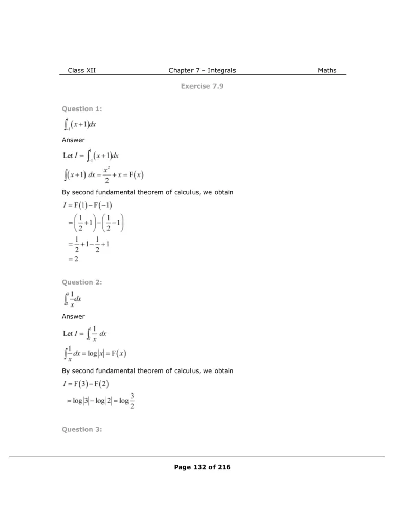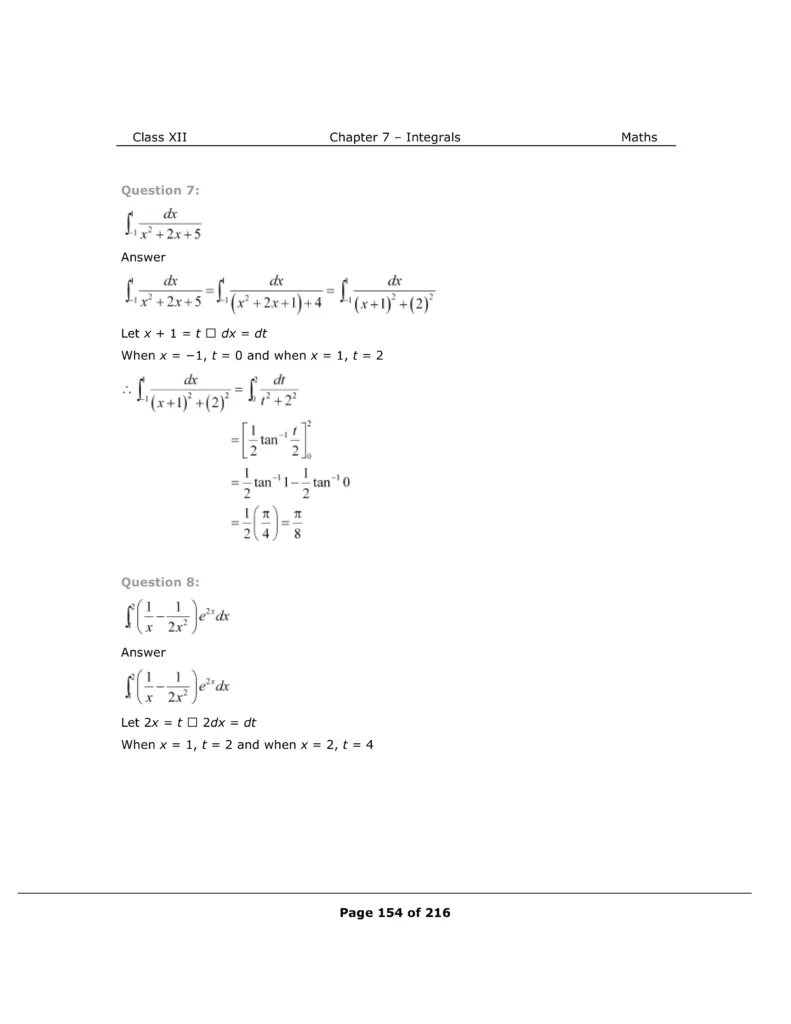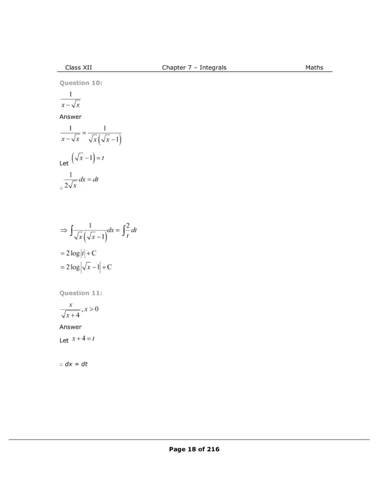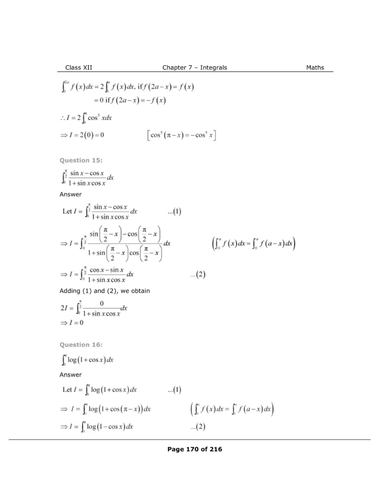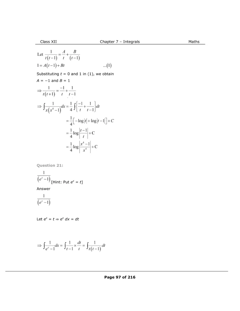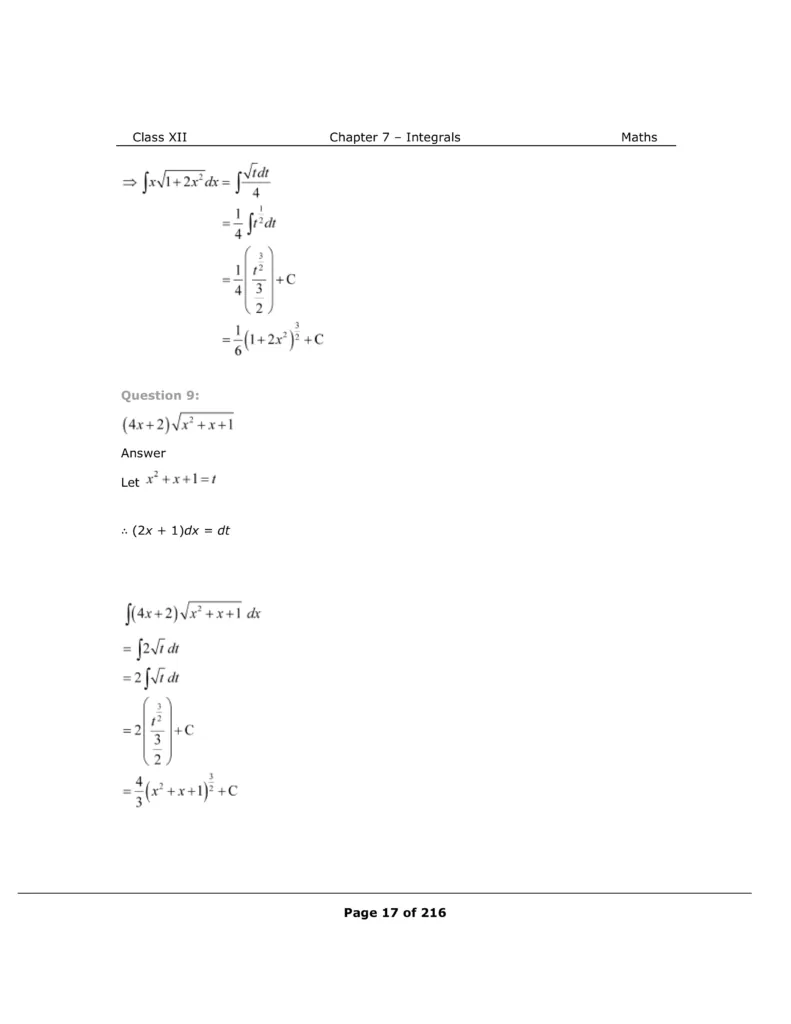 Download The PDF of NCERT Solutions for Class 12 Maths Chapter 7 "Integrals"