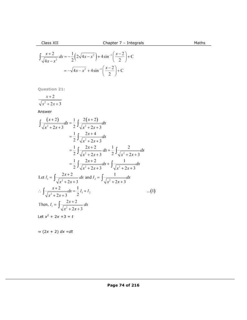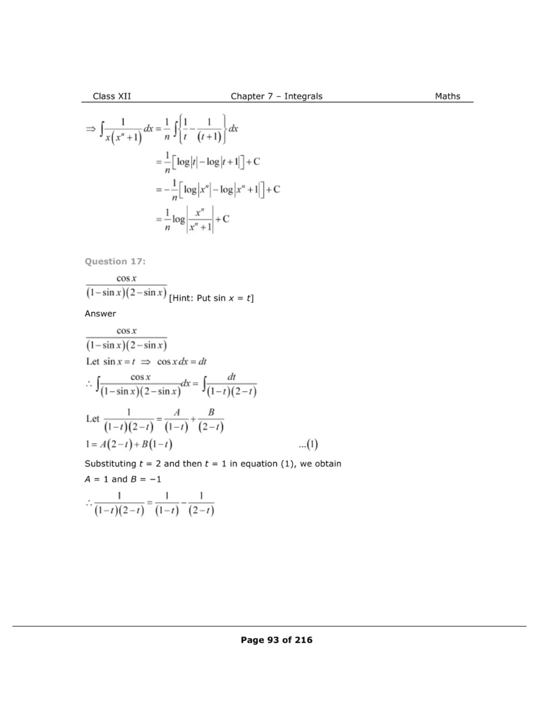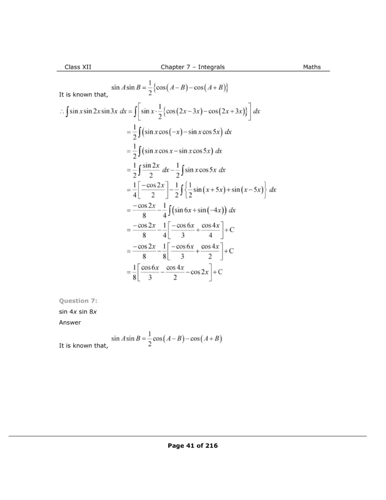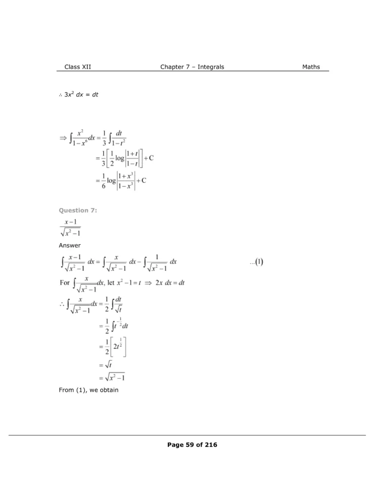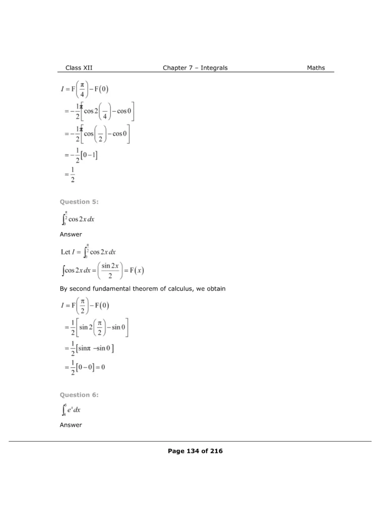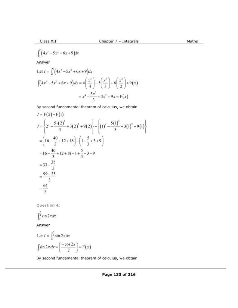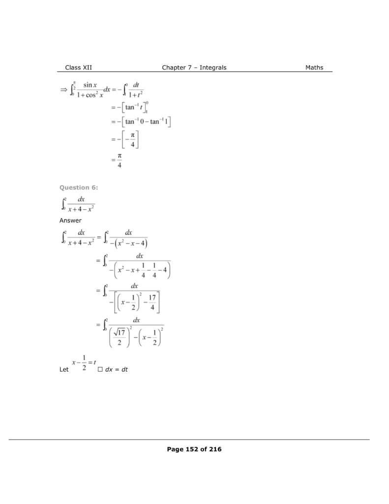 Download The PDF of NCERT Solutions for Class 12 Maths Chapter 7 "Integrals"