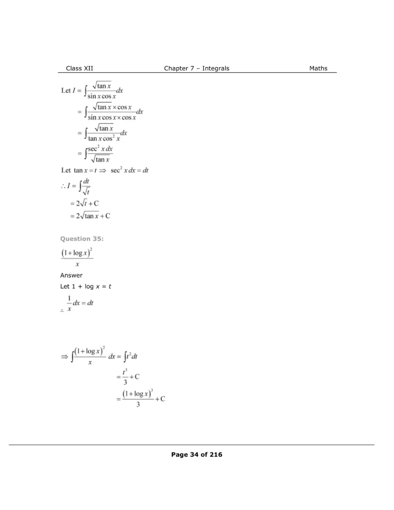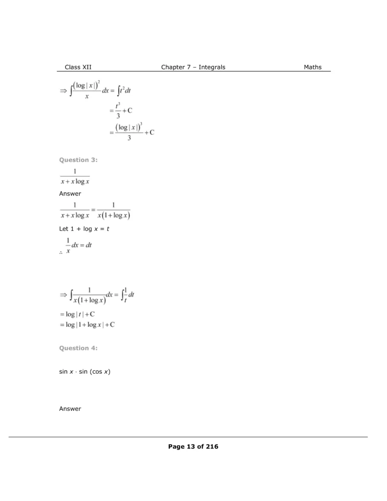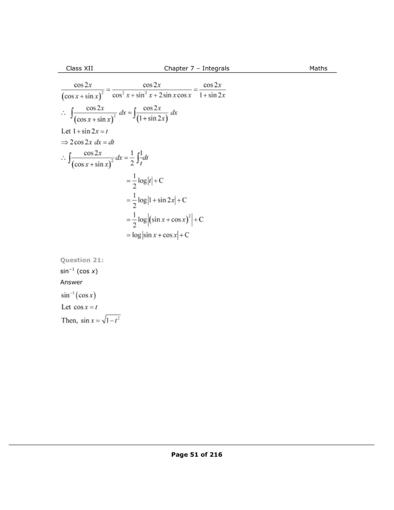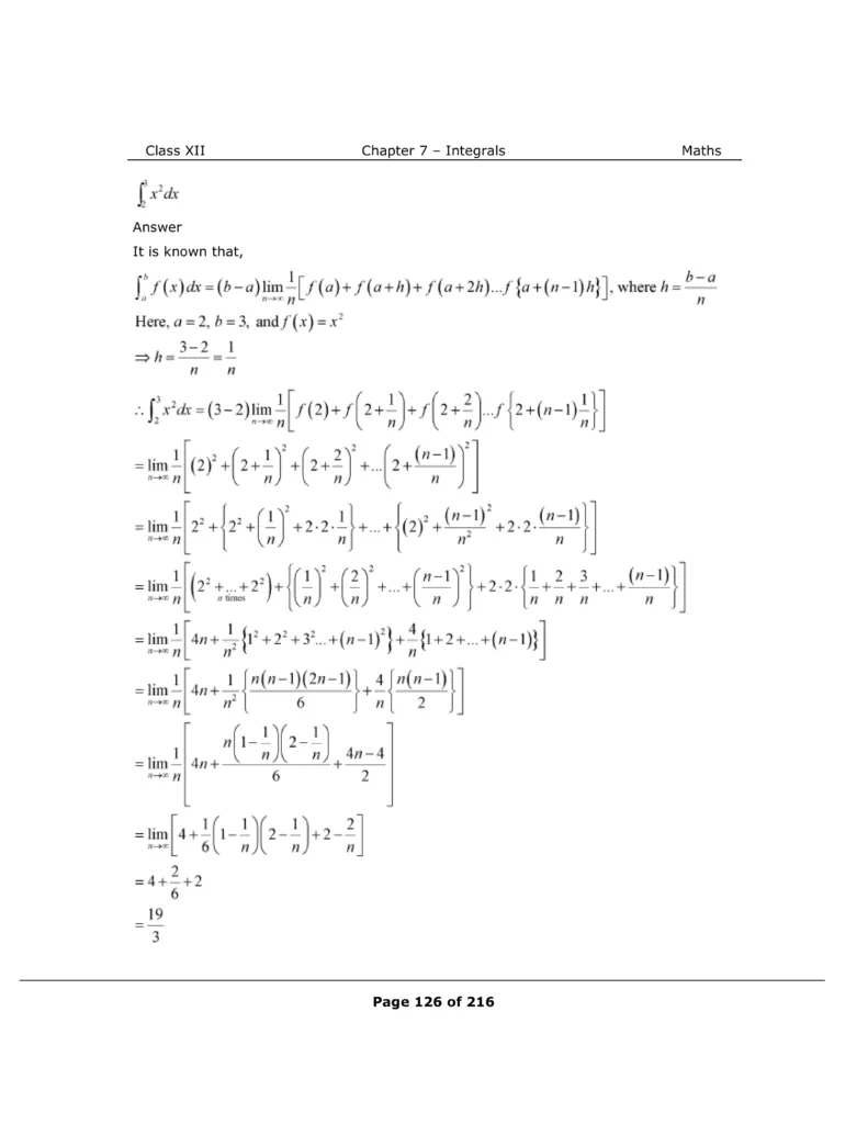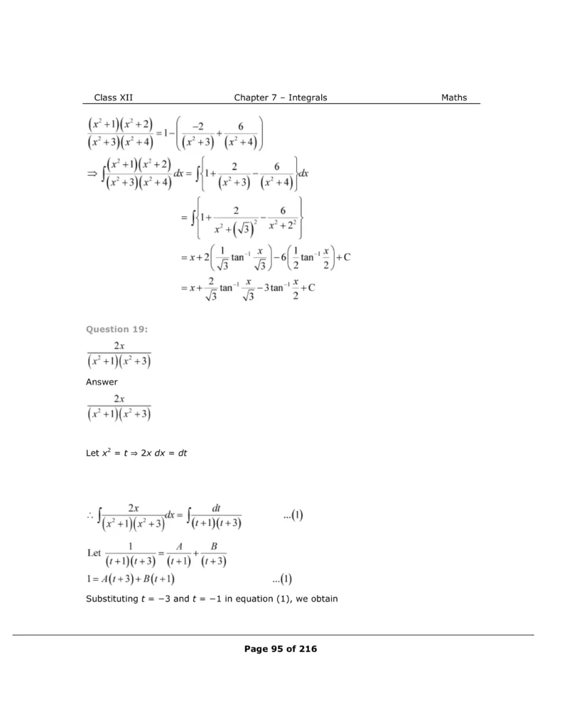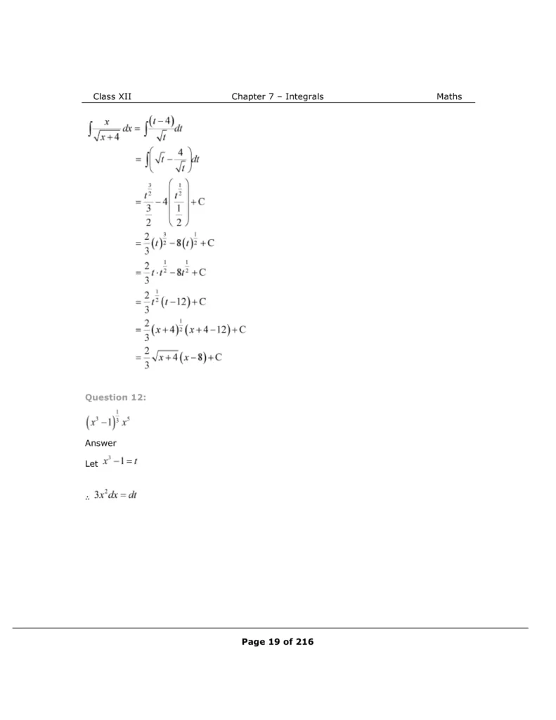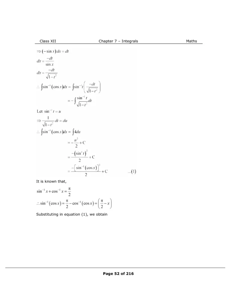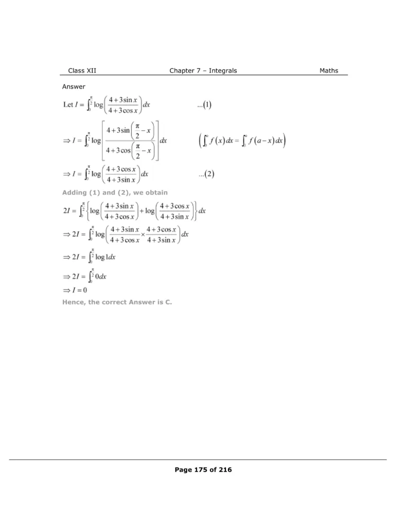 Download The PDF of NCERT Solutions for Class 12 Maths Chapter 7 "Integrals"