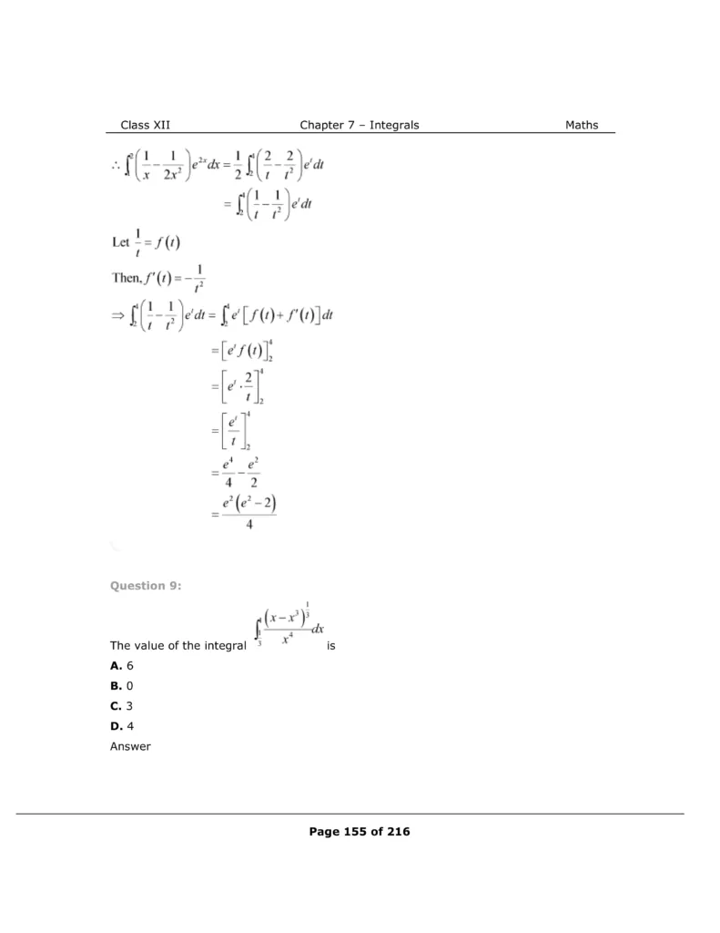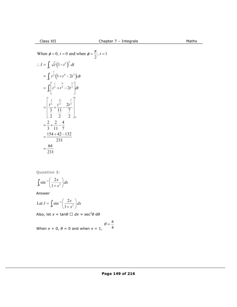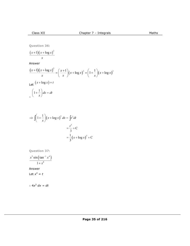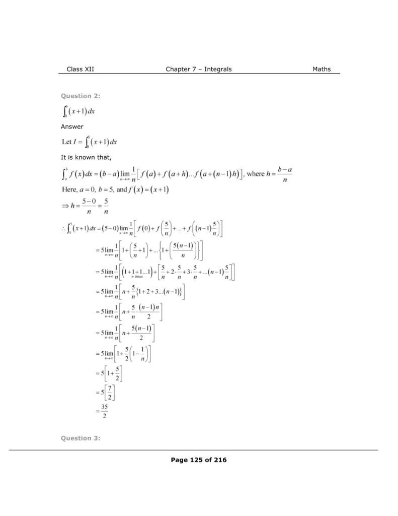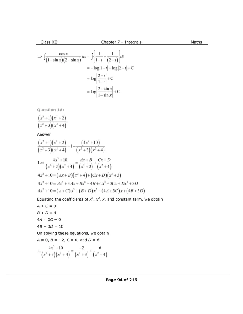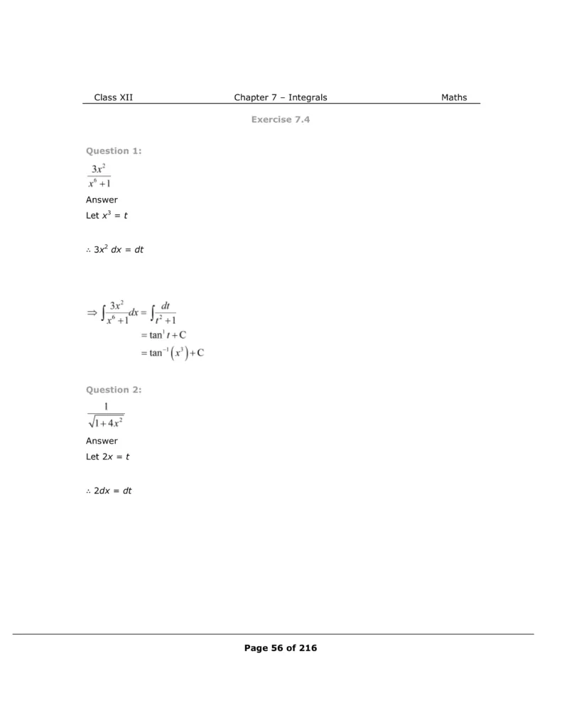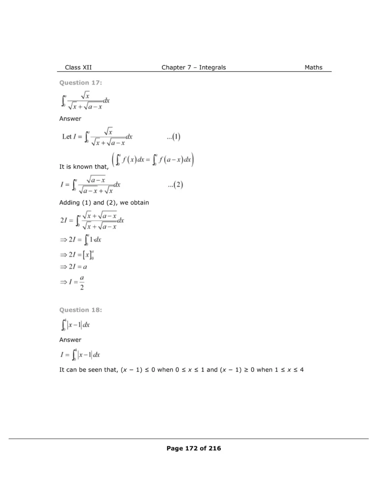 Download The PDF of NCERT Solutions for Class 12 Maths Chapter 7 "Integrals"