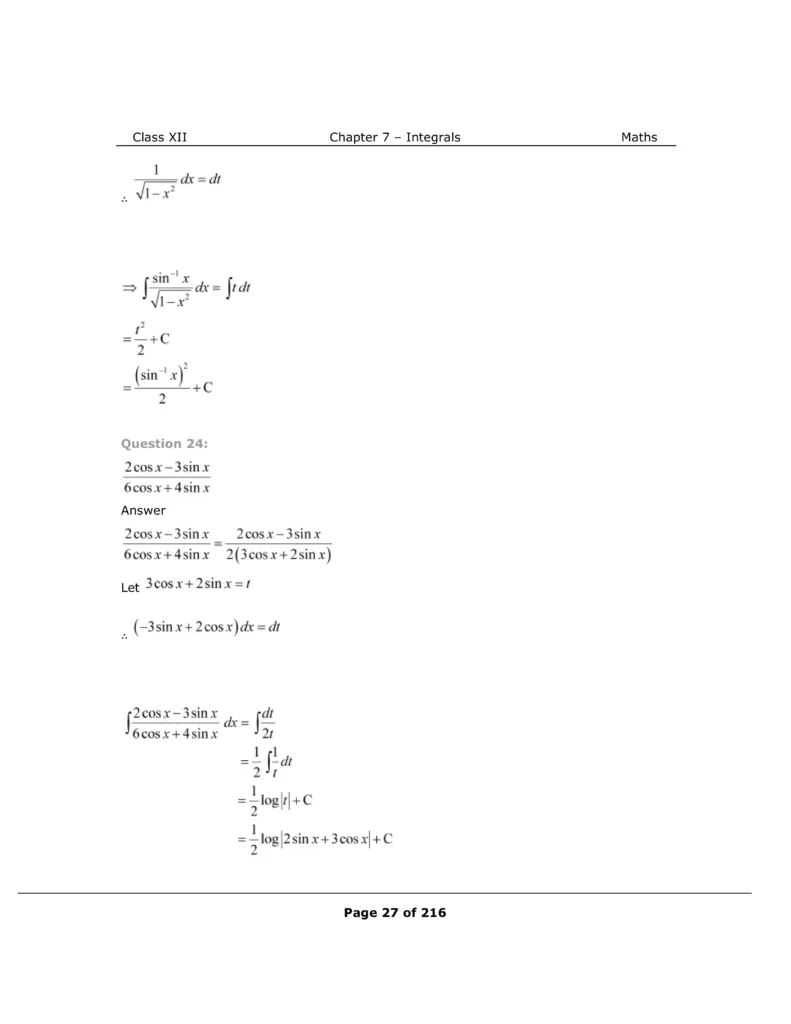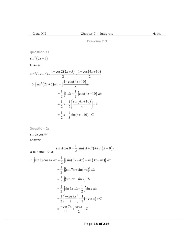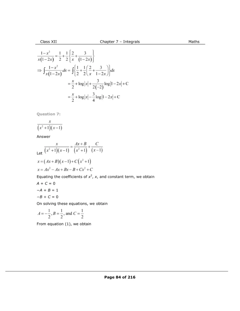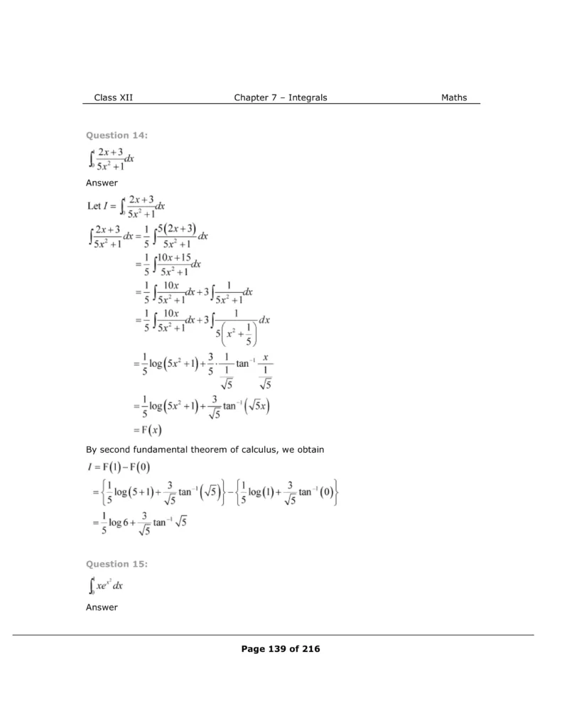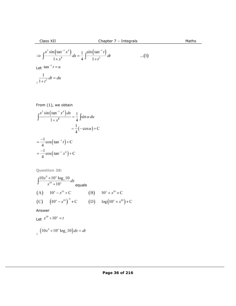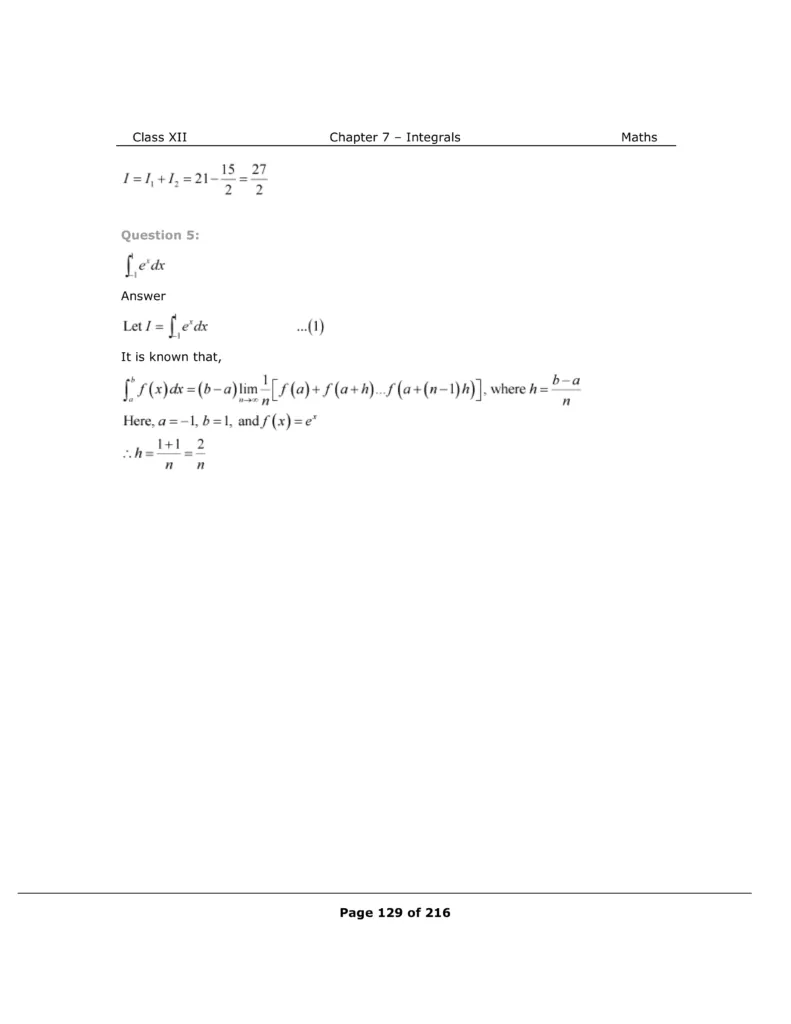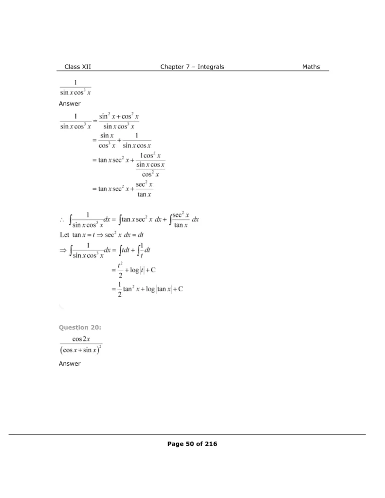 Download The PDF of NCERT Solutions for Class 12 Maths Chapter 7 "Integrals"