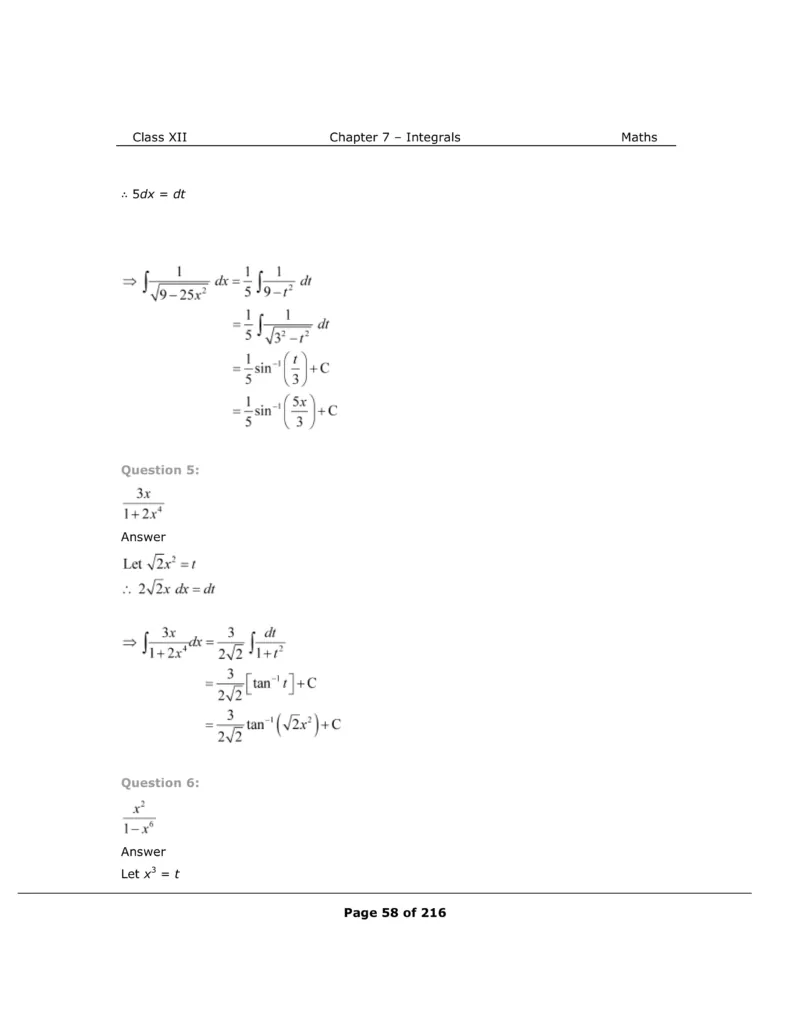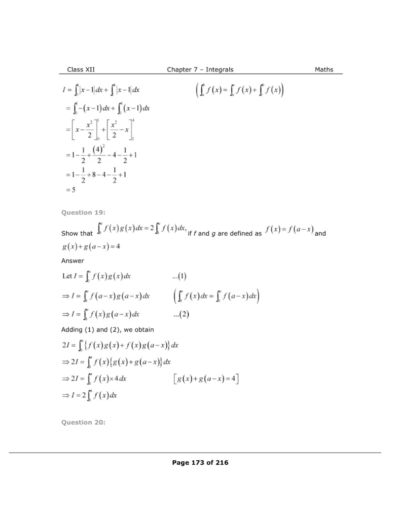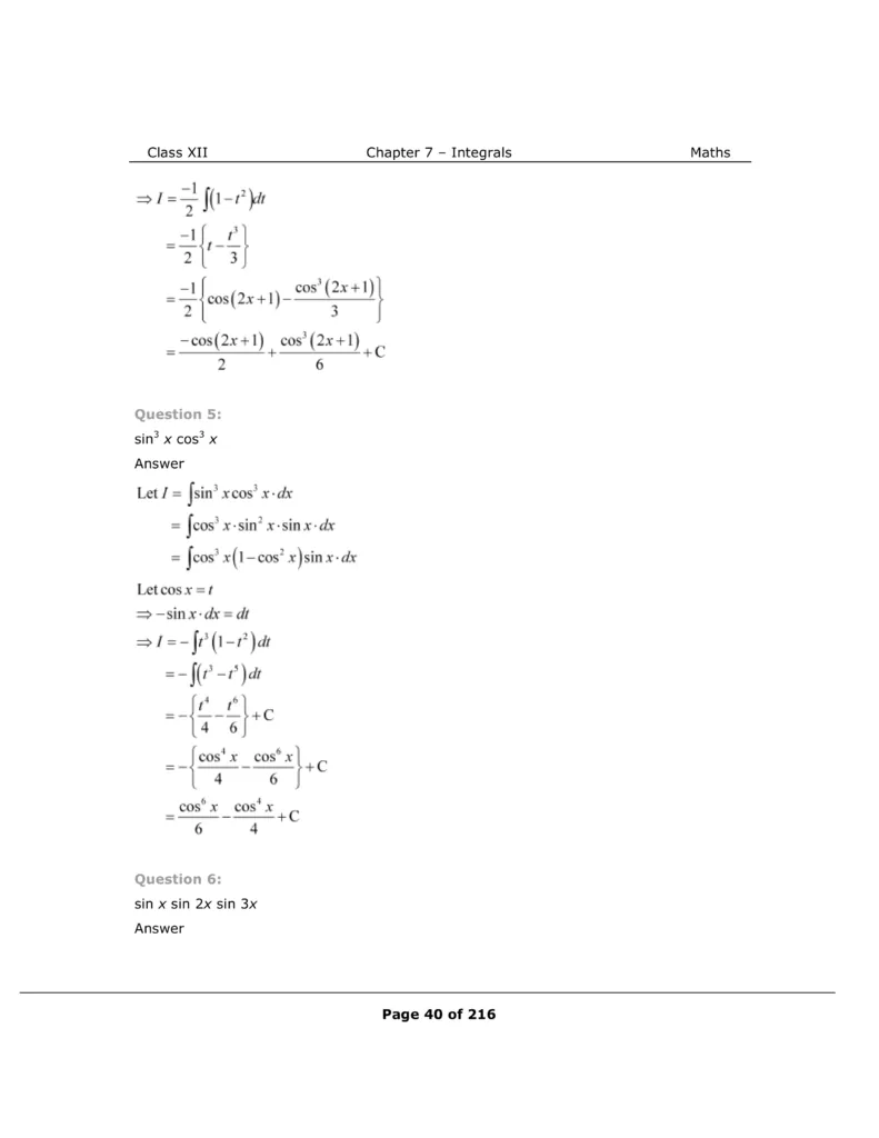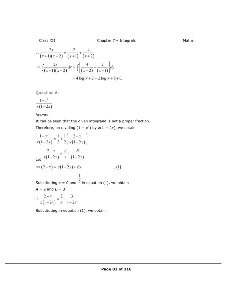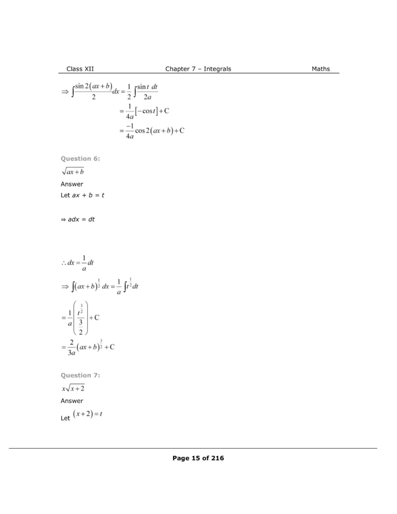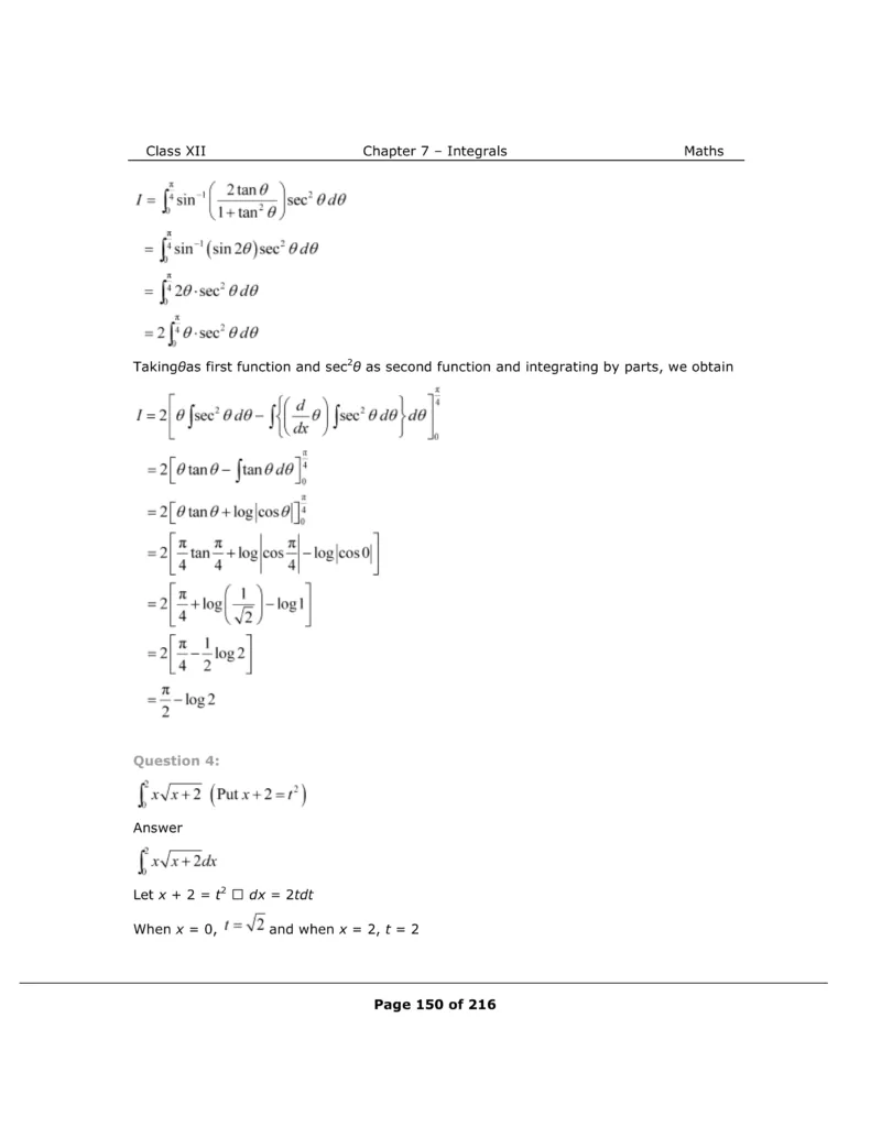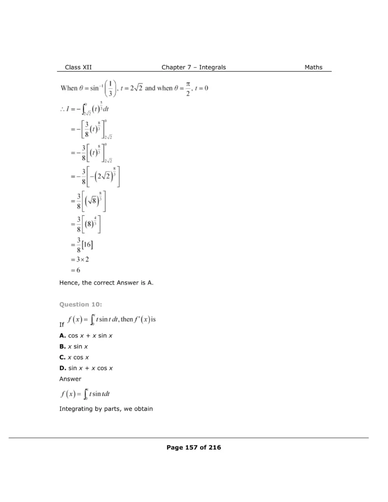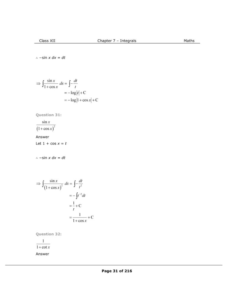 Download The PDF of NCERT Solutions for Class 12 Maths Chapter 7 "Integrals"