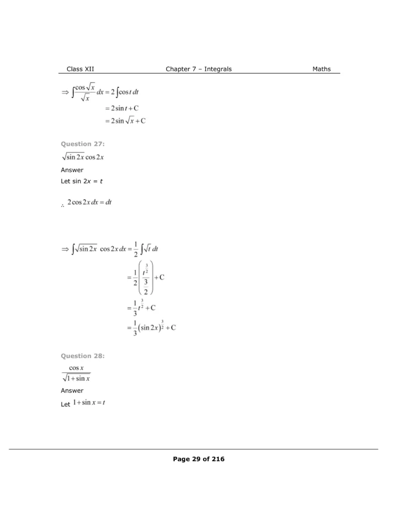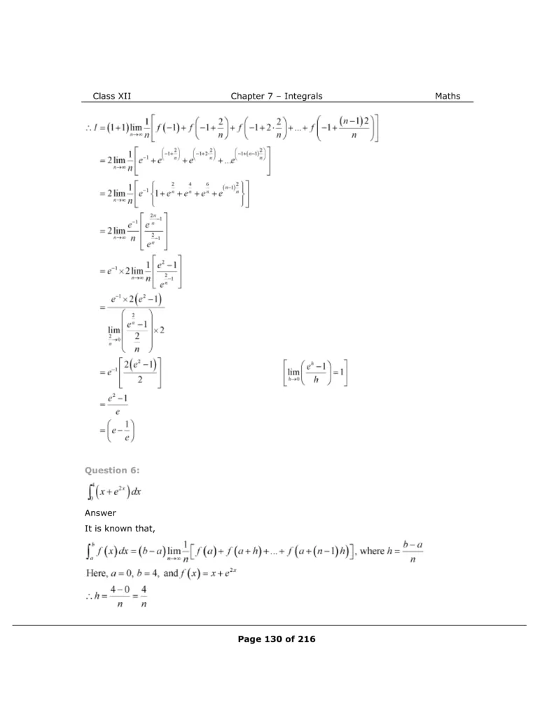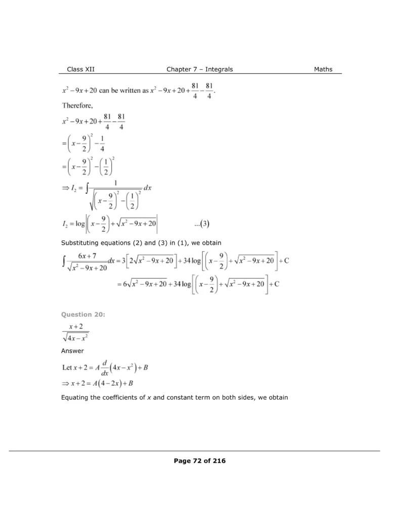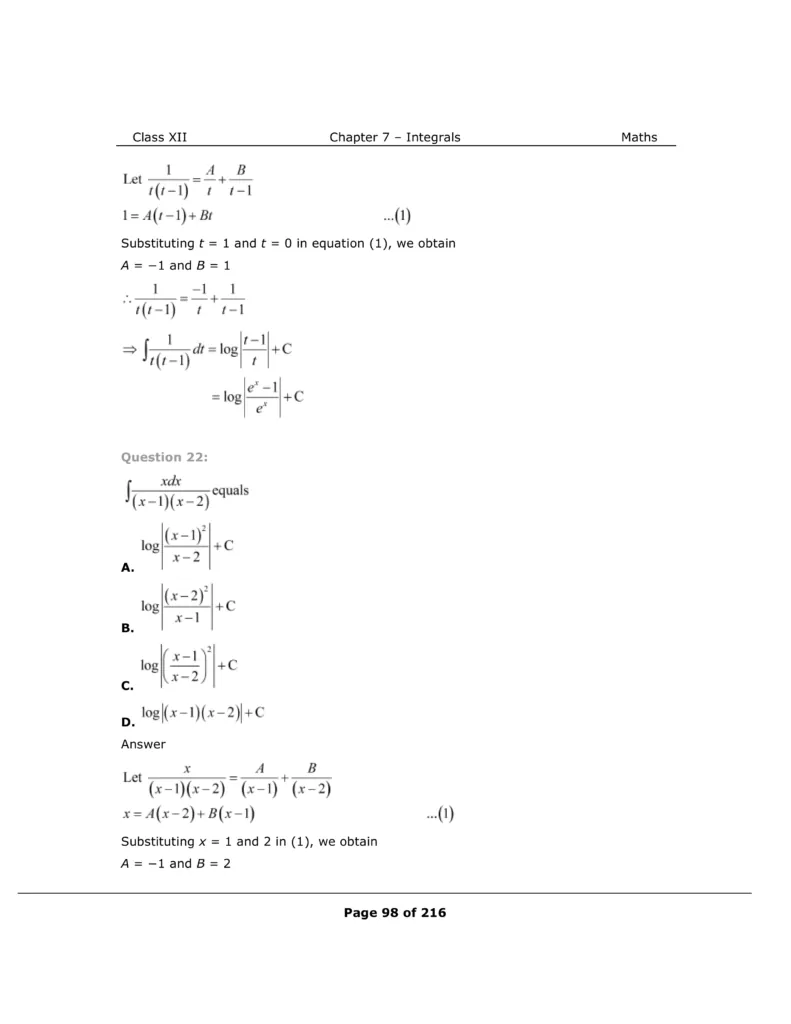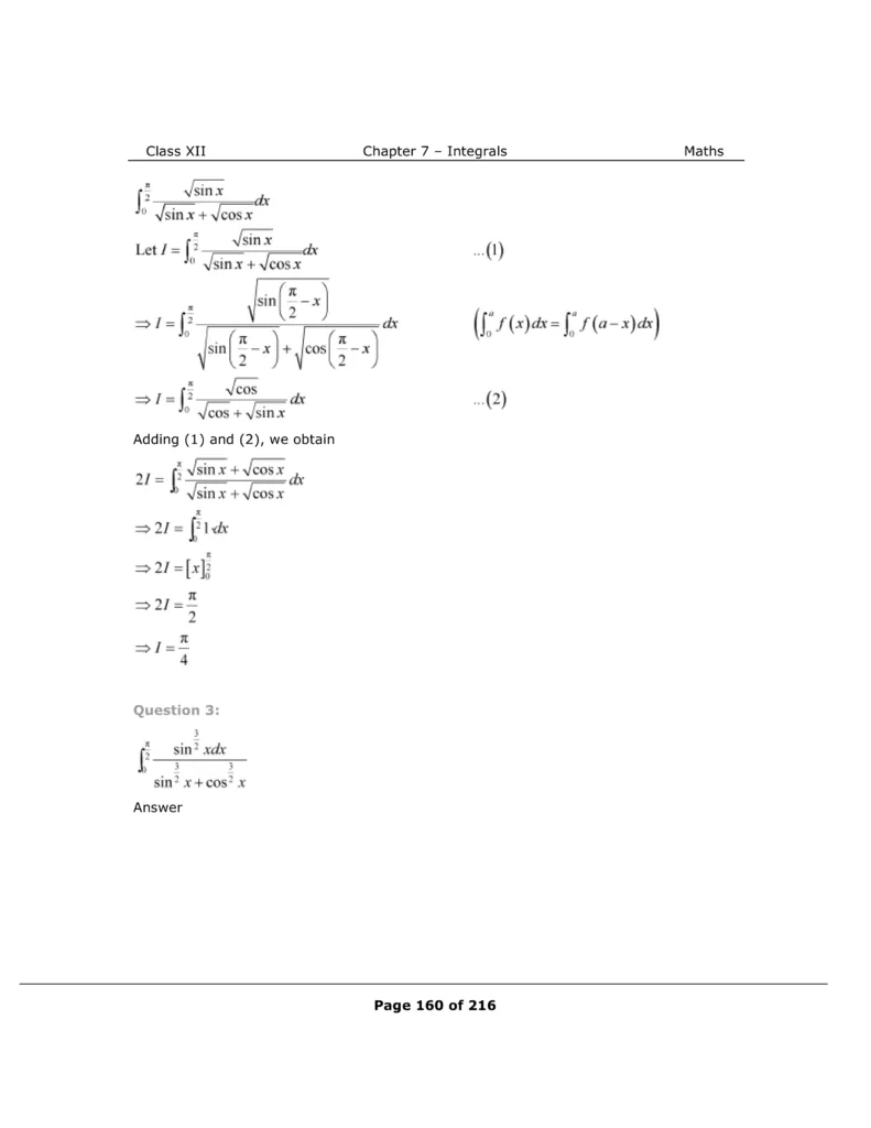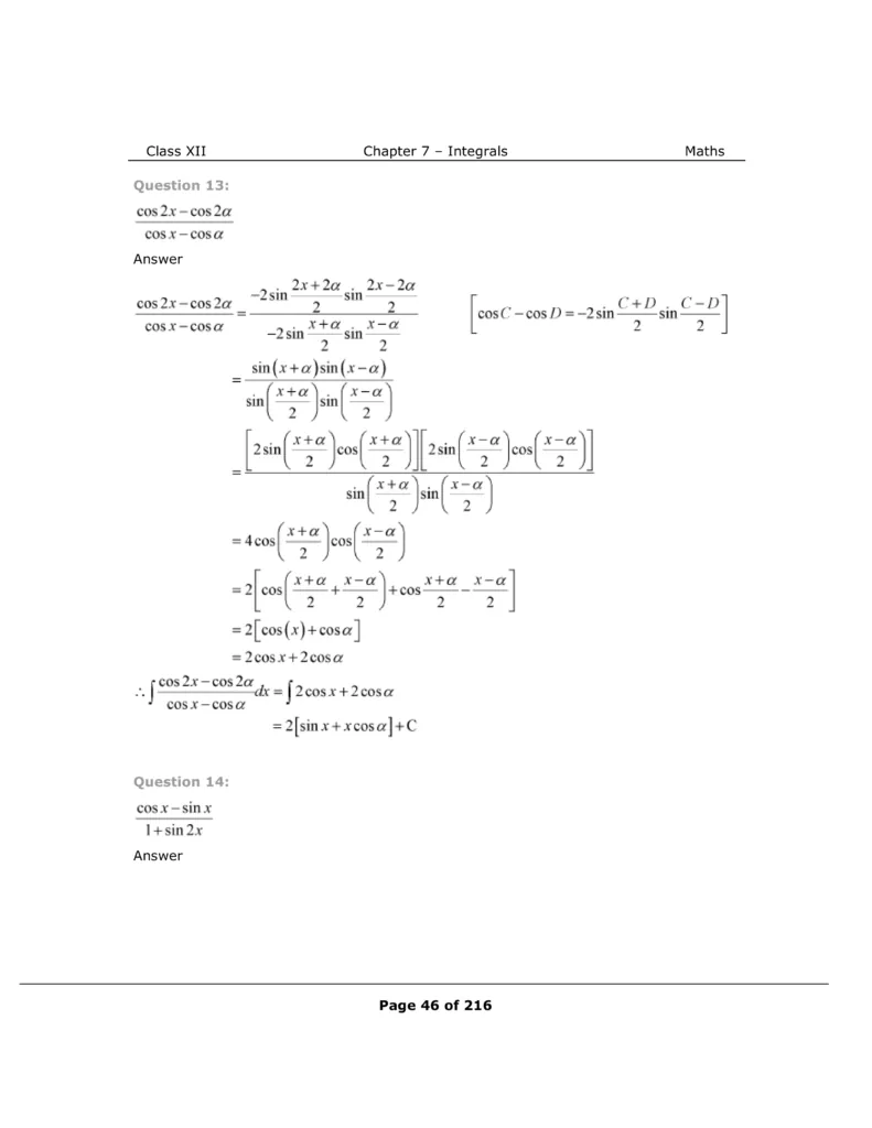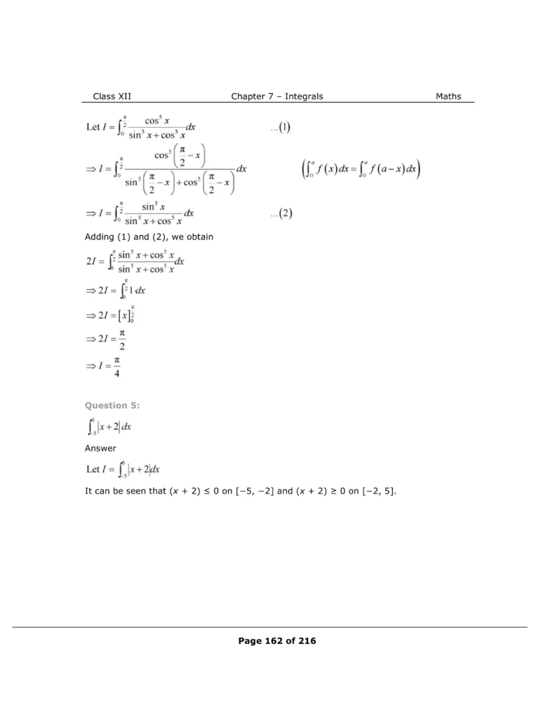 Download The PDF of NCERT Solutions for Class 12 Maths Chapter 7 "Integrals"