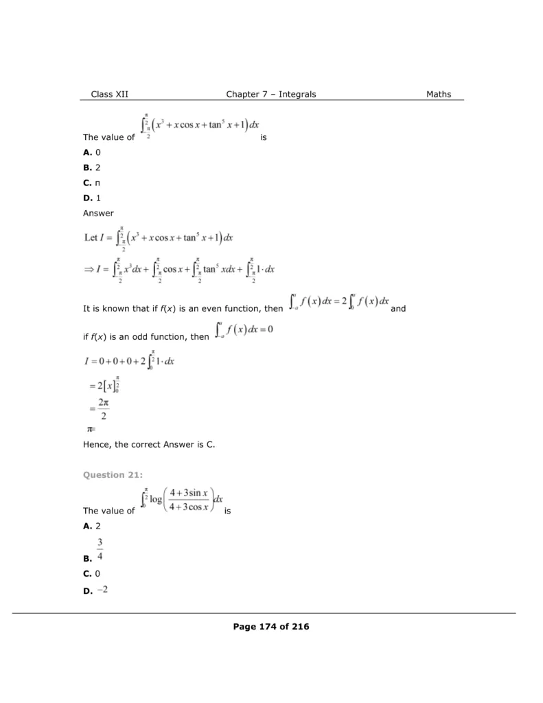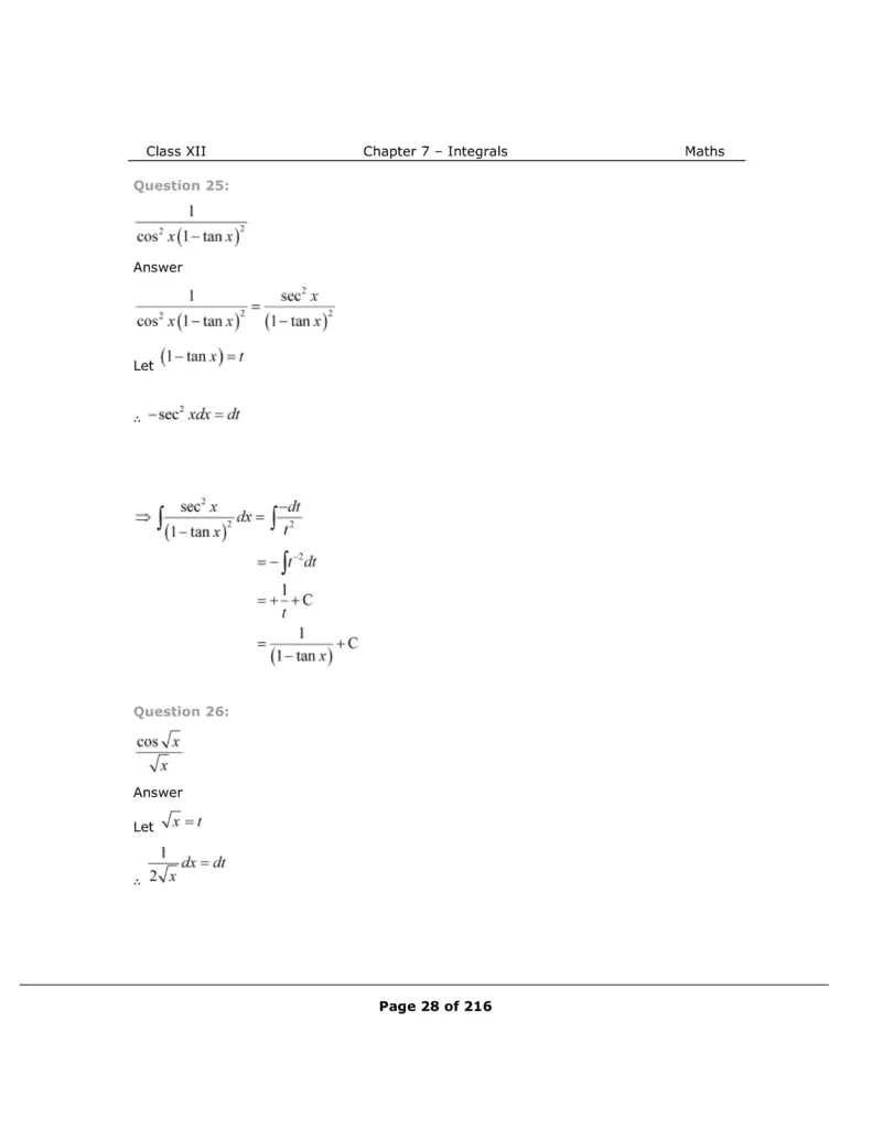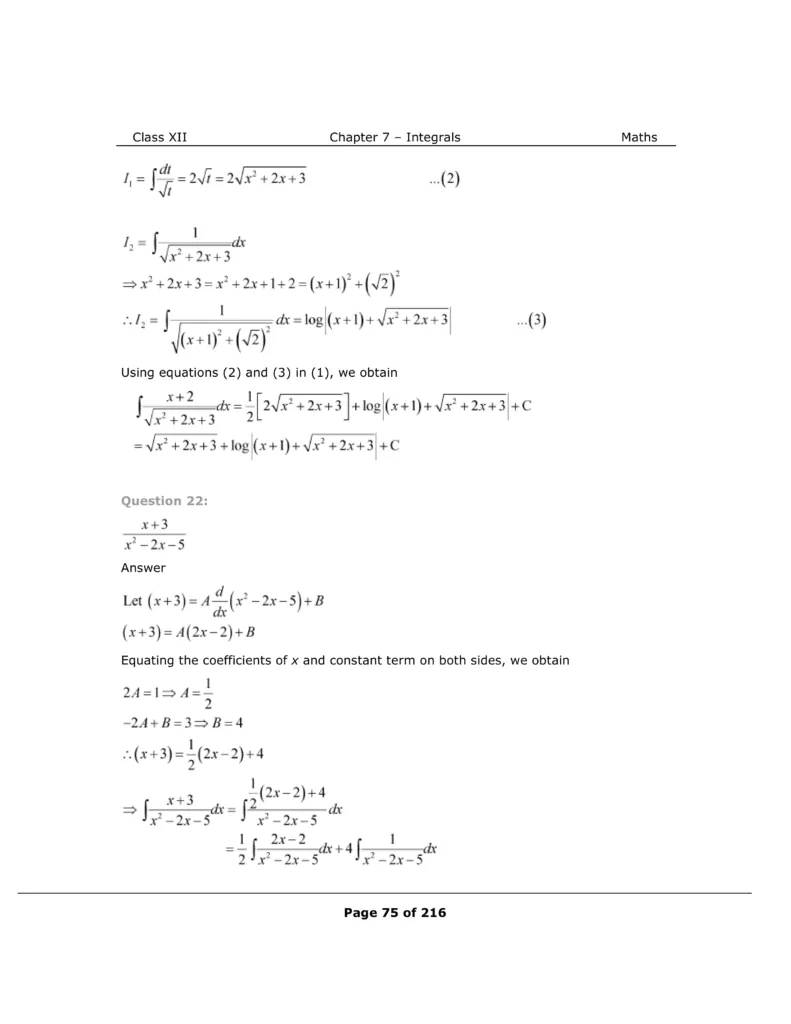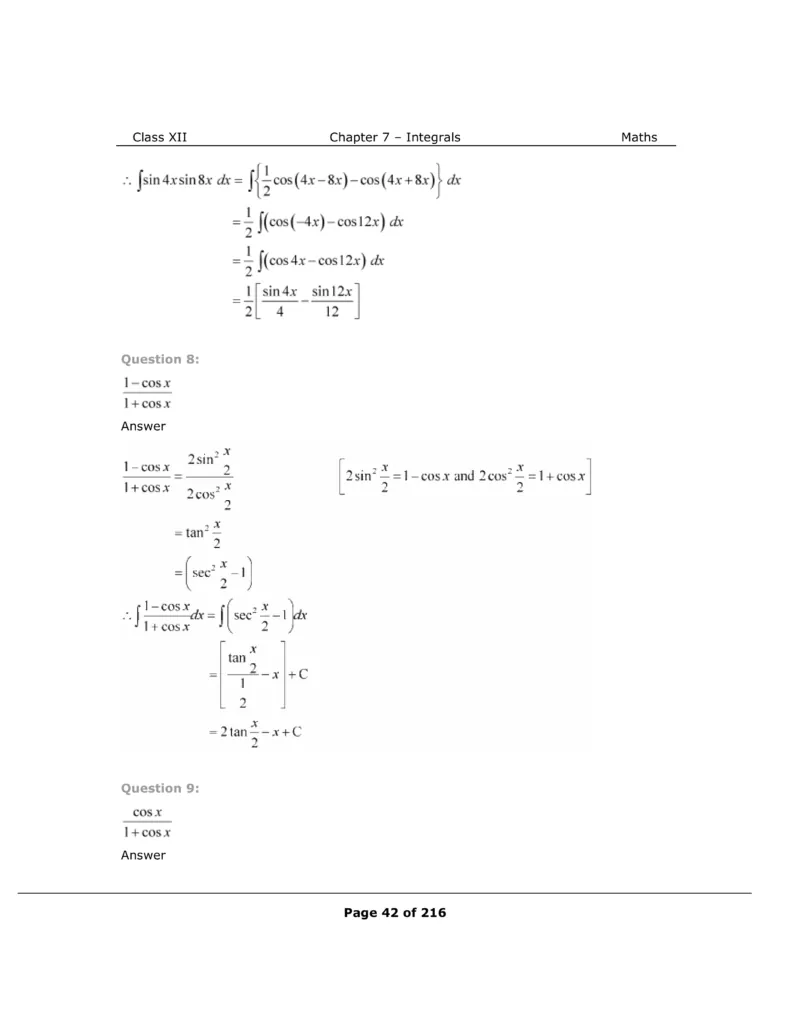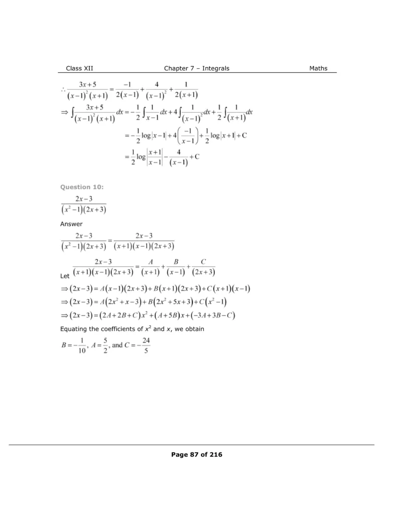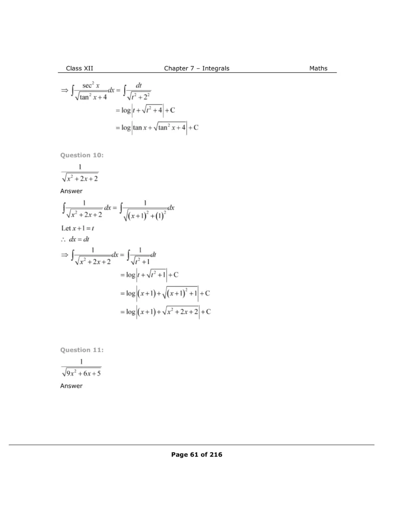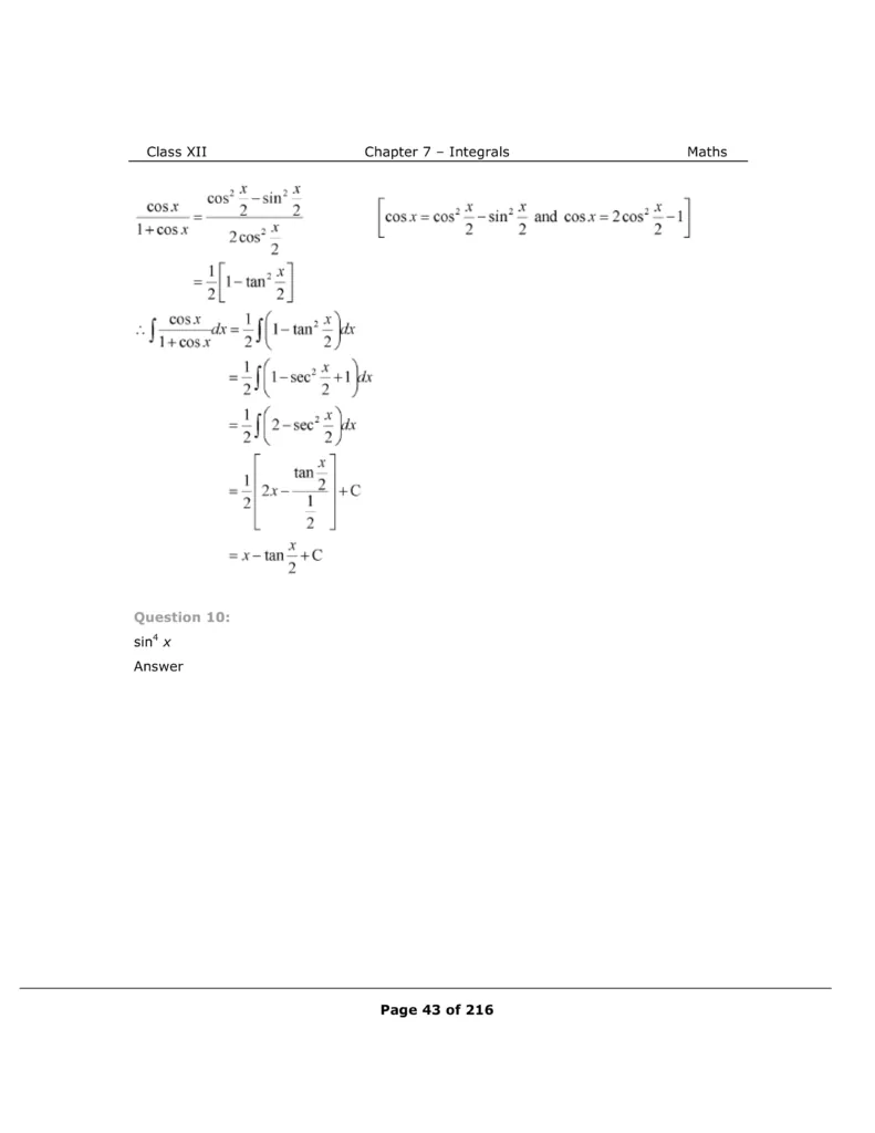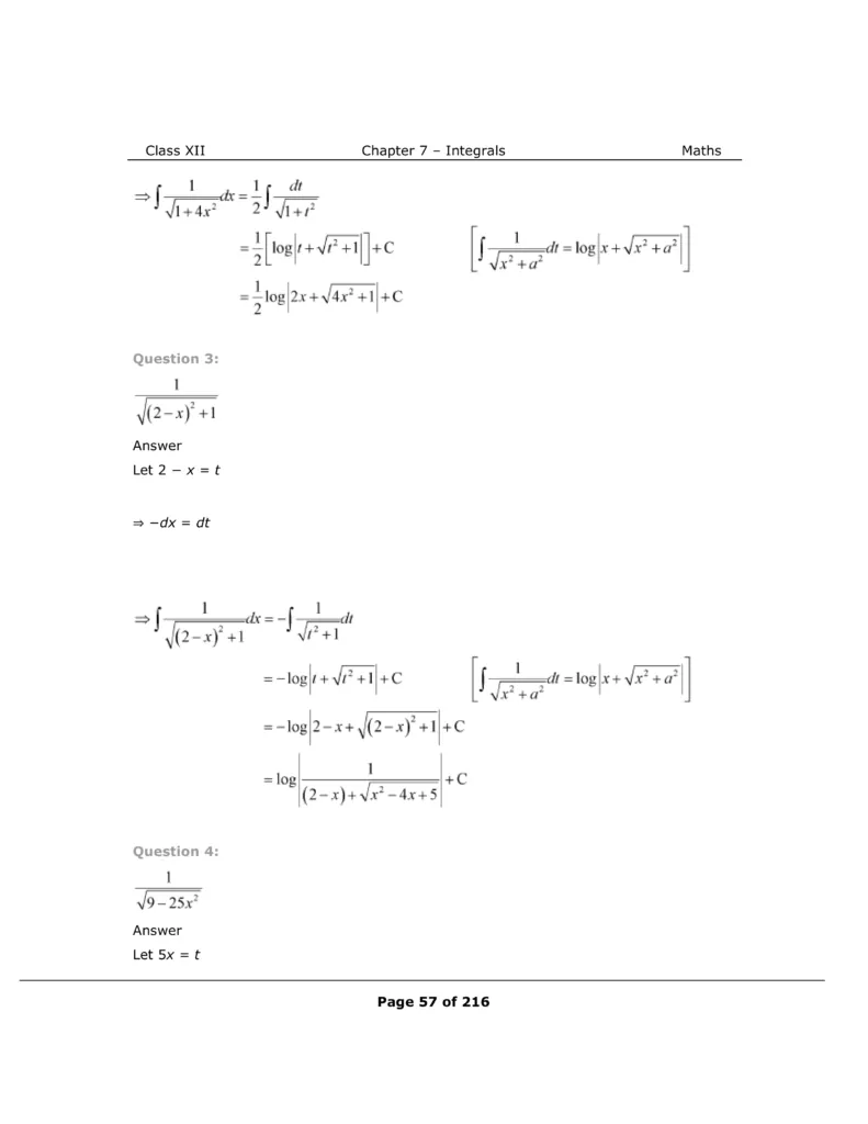 Download The PDF of NCERT Solutions for Class 12 Maths Chapter 7 "Integrals"