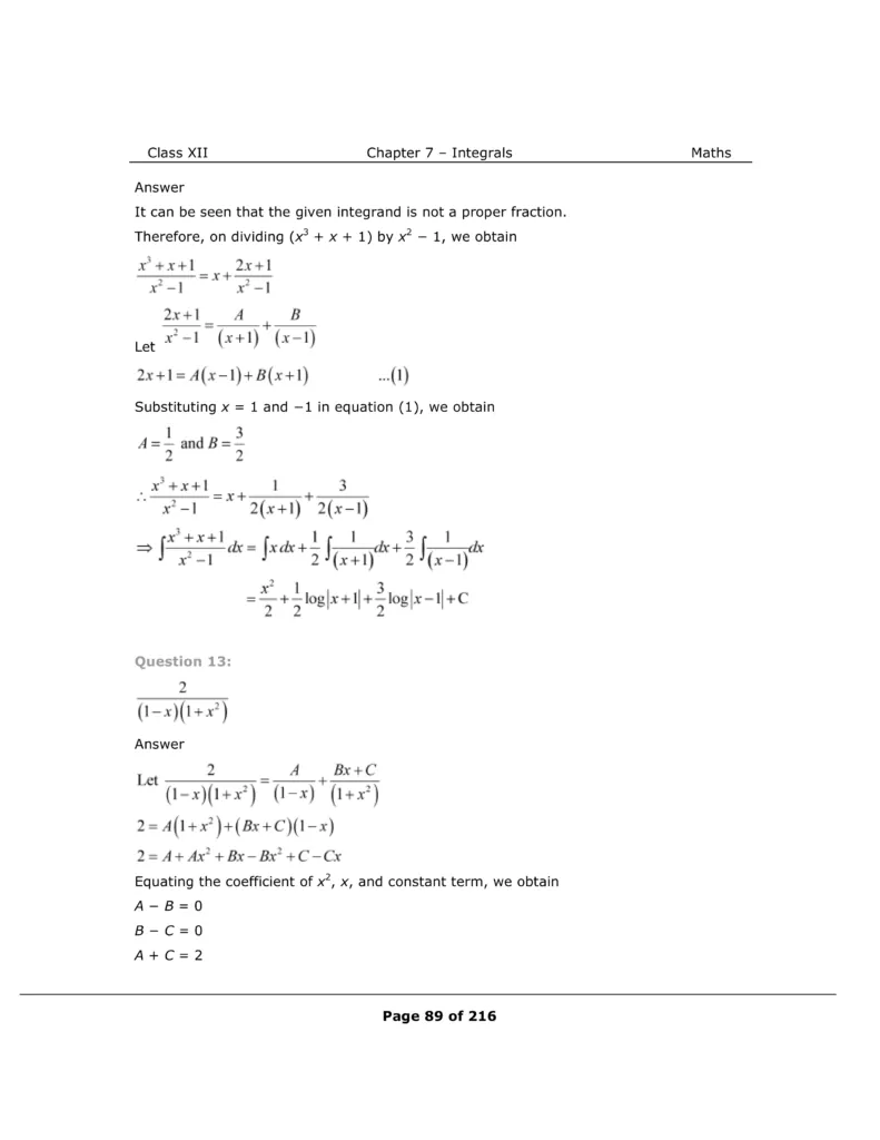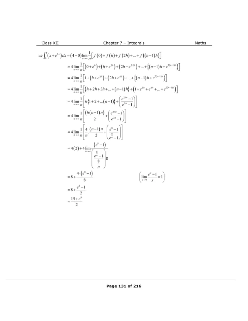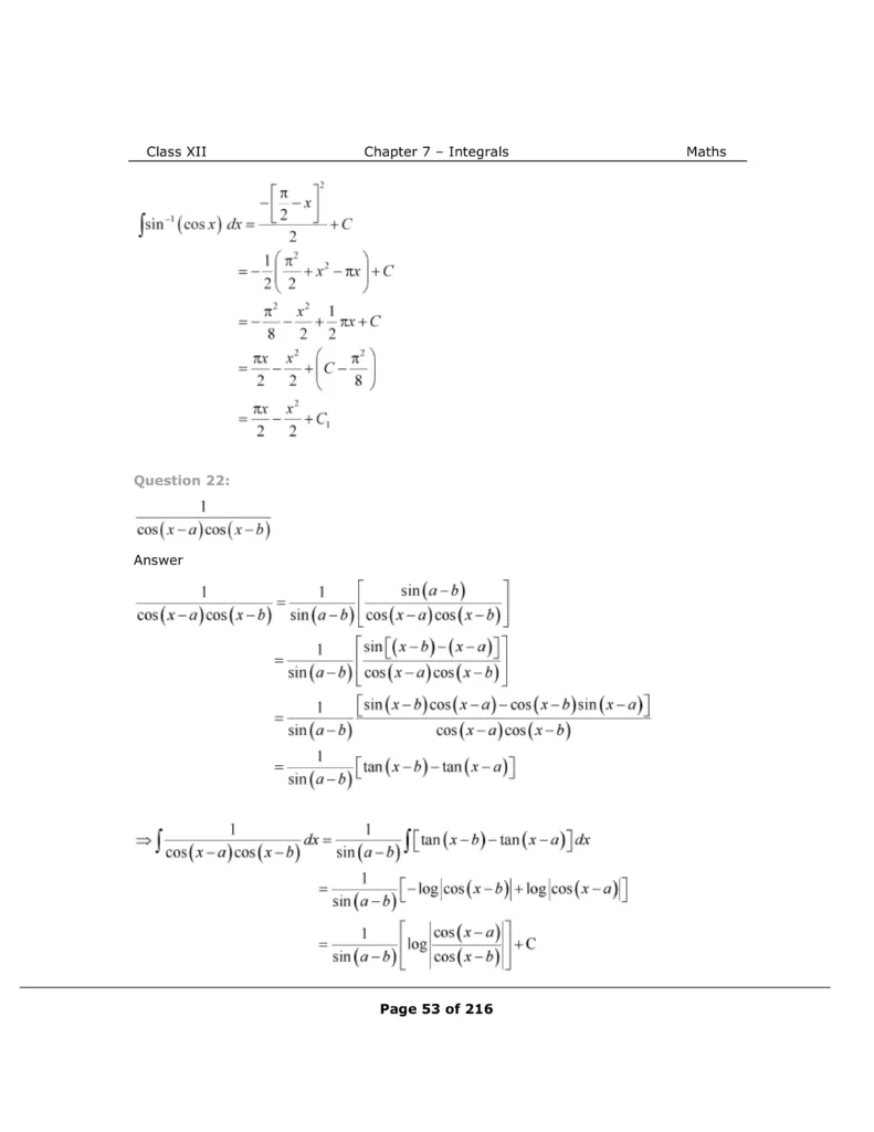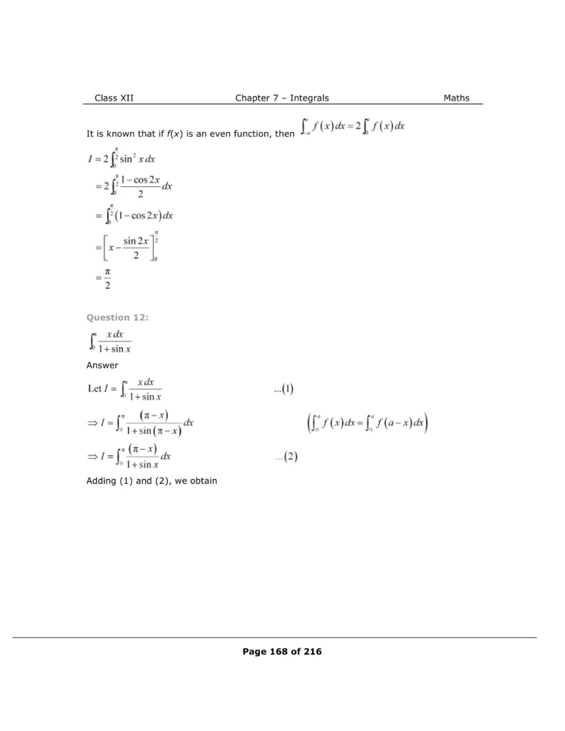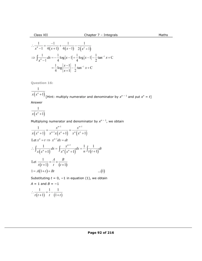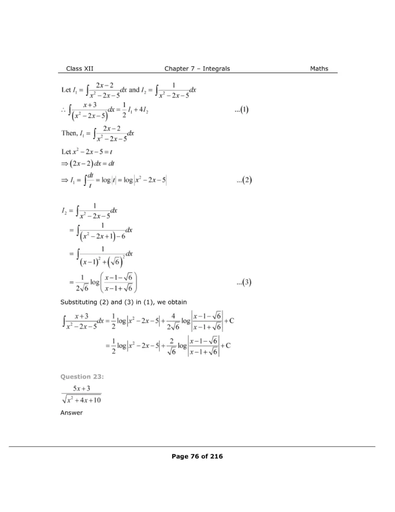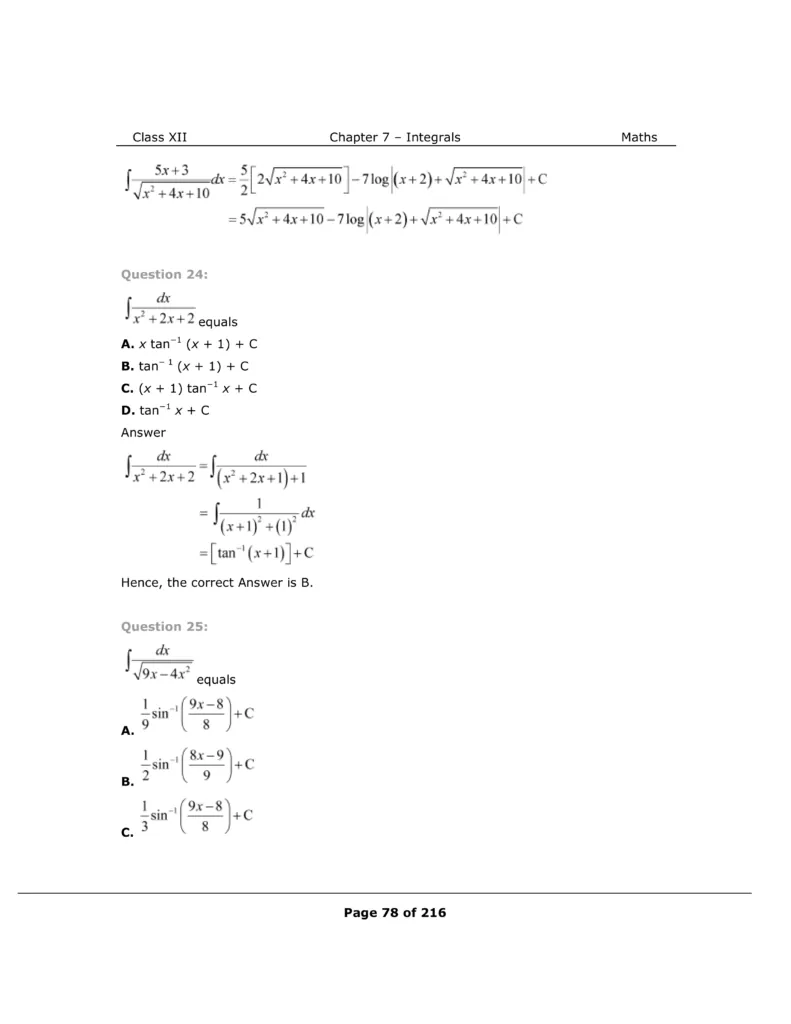 Download The PDF of NCERT Solutions for Class 12 Maths Chapter 7 "Integrals"