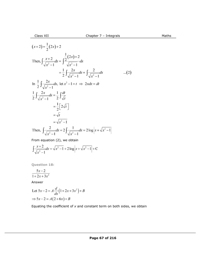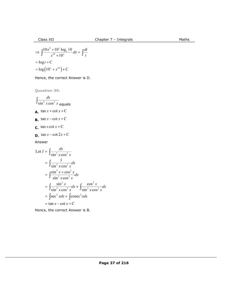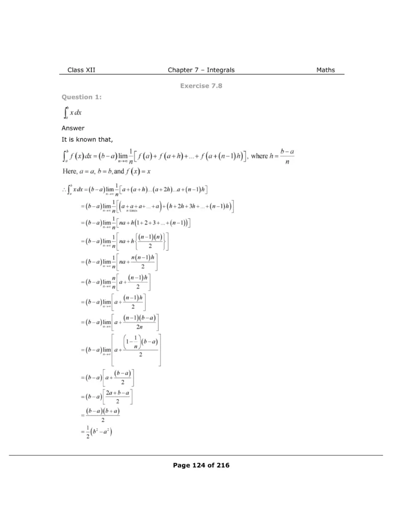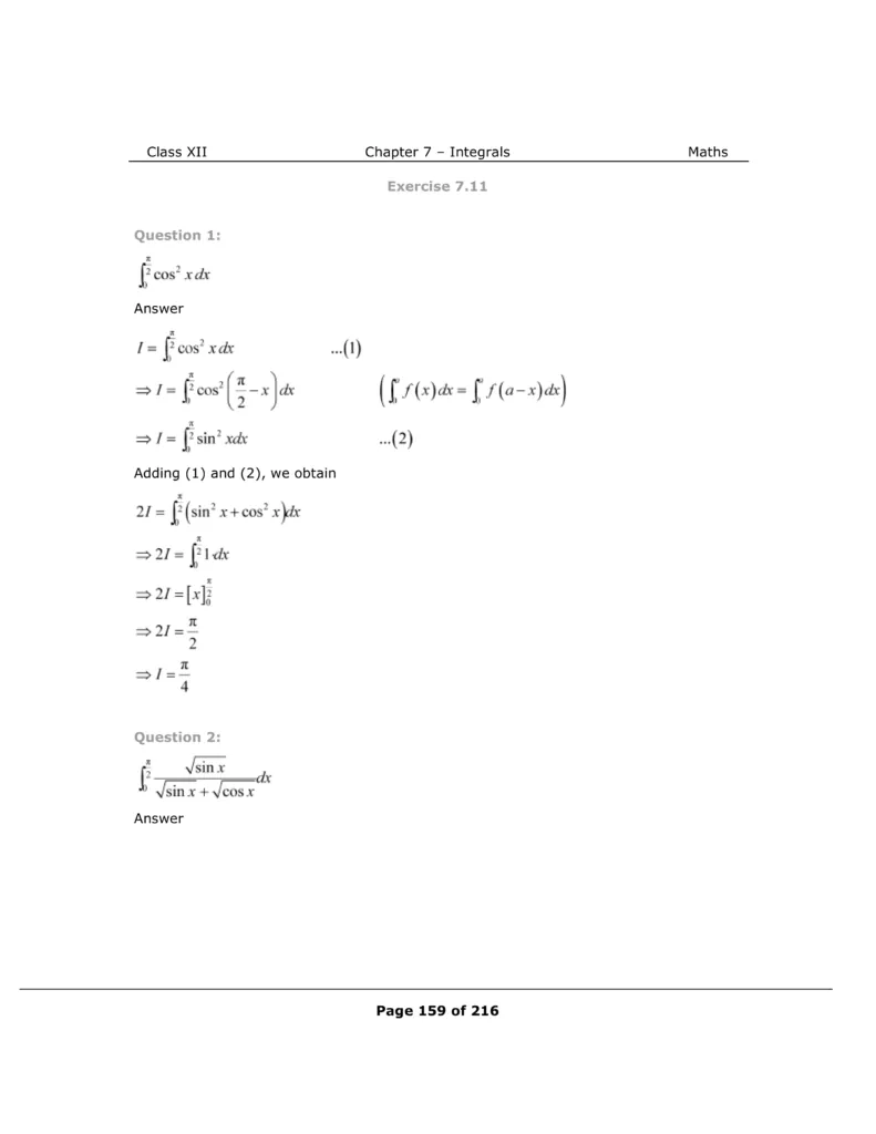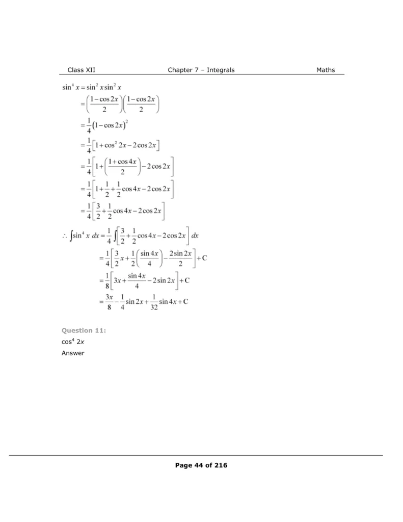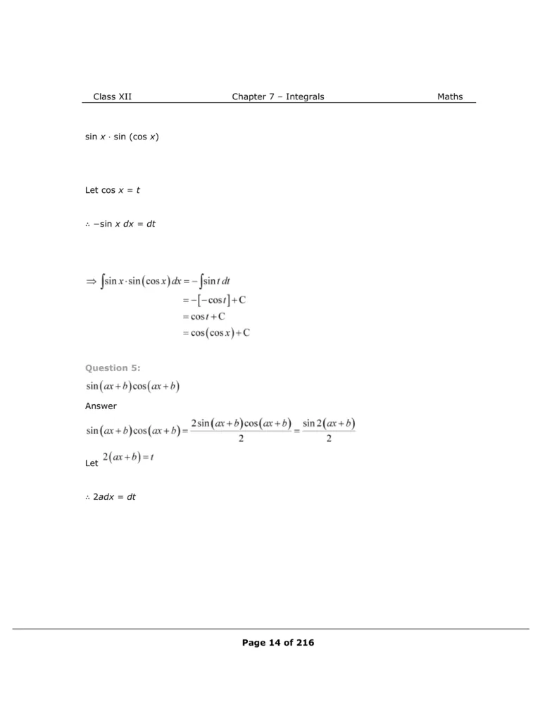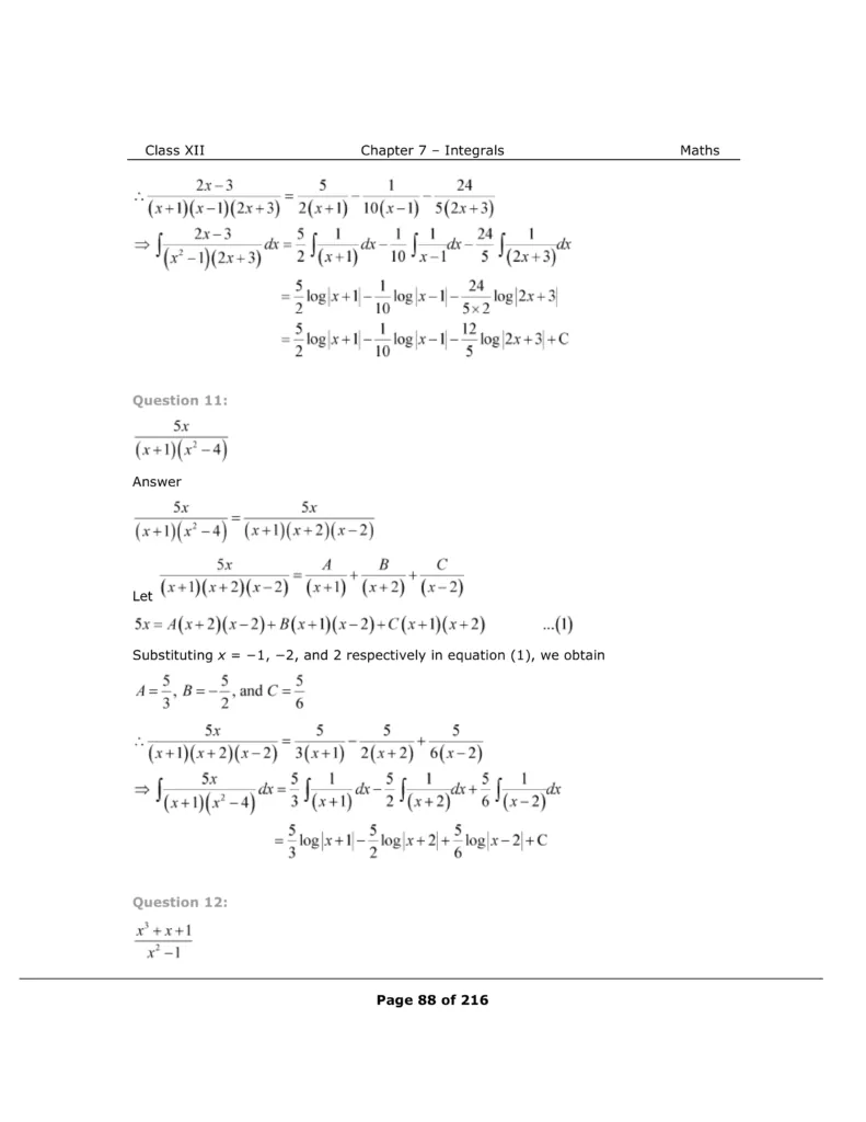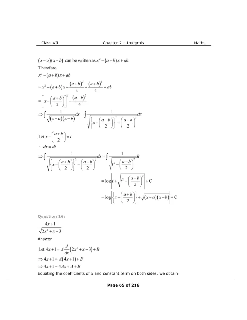 Download The PDF of NCERT Solutions for Class 12 Maths Chapter 7 "Integrals"