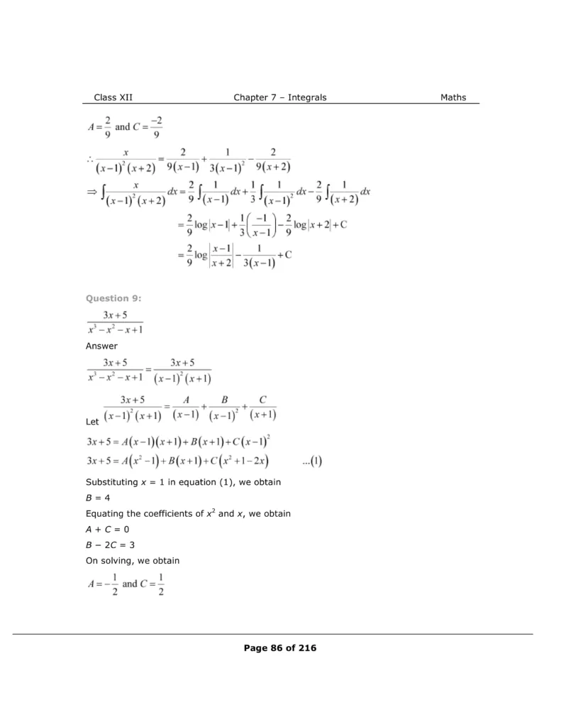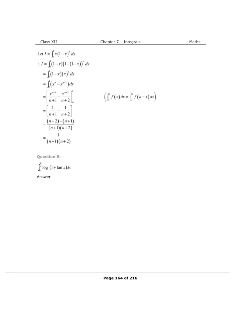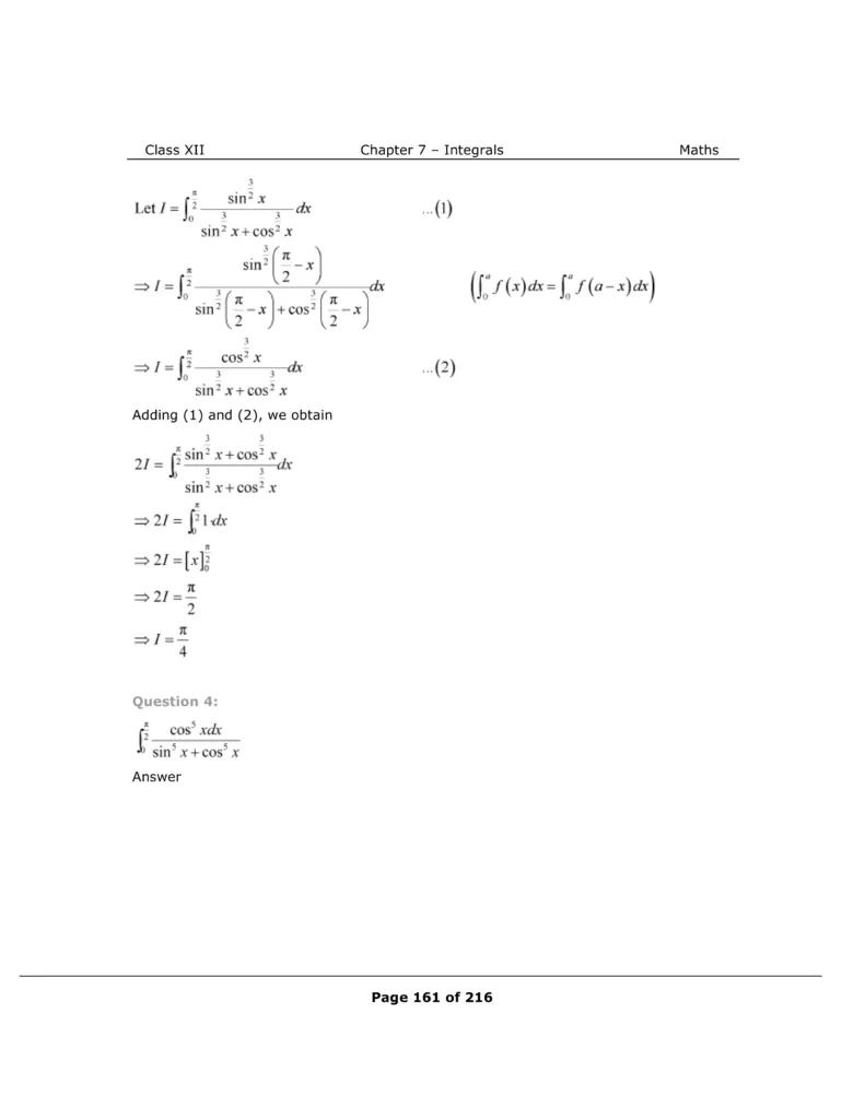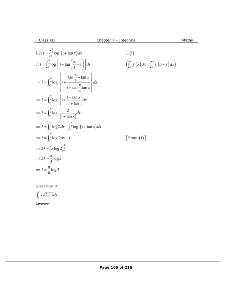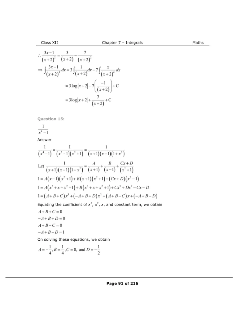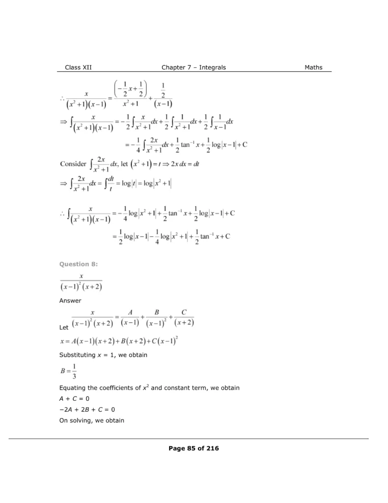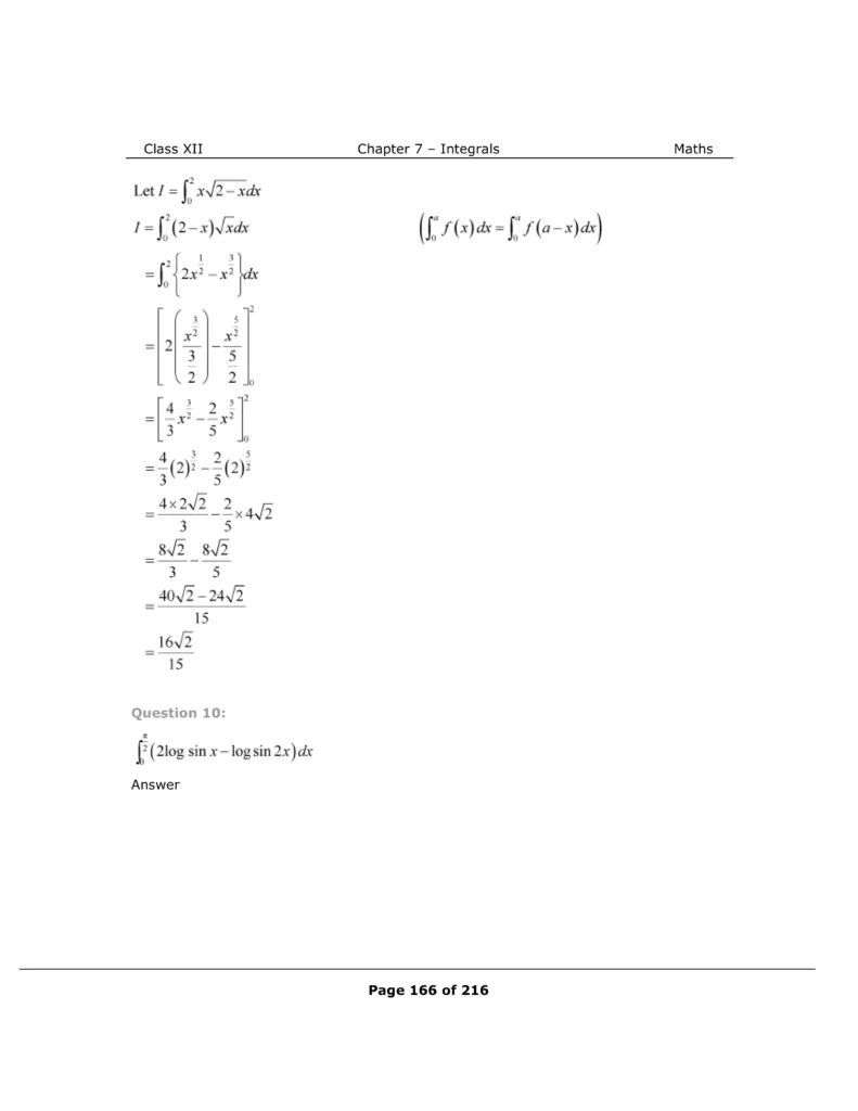 Download The PDF of NCERT Solutions for Class 12 Maths Chapter 7 "Integrals"