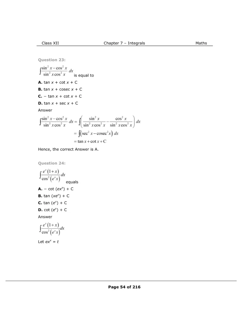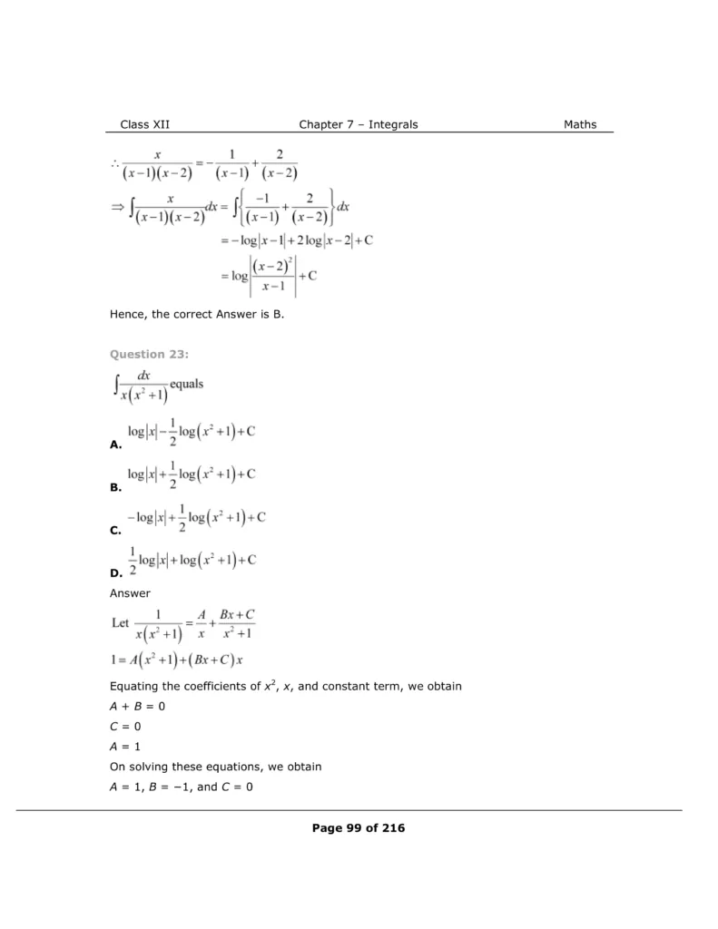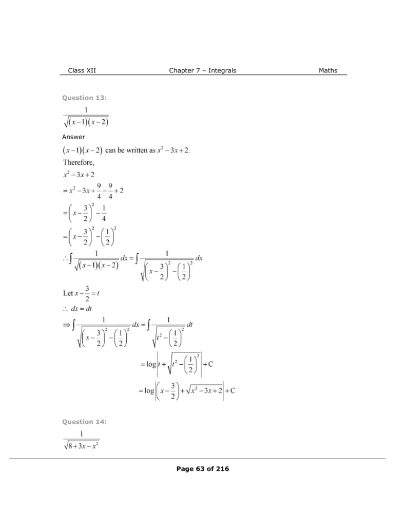 If you want to learn and understand class 12 Maths chapter 7 "Integrals" in an easy way then you can use these solutions PDF.