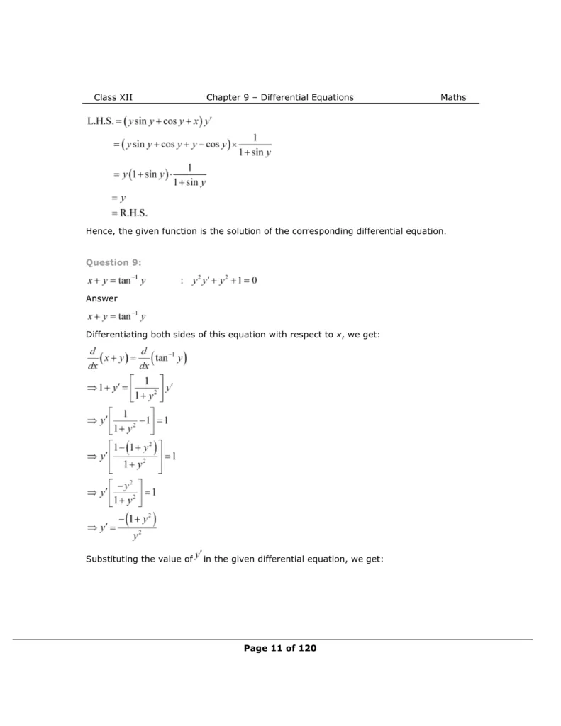 Download The PDF of NCERT Solutions for Class 12 Maths Chapter 9 "Differential Equations"