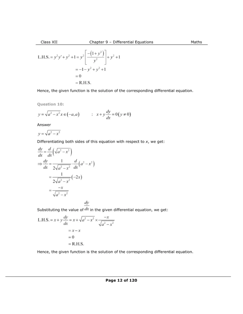 If you want to learn and understand class 12 Maths chapter 9 "Differential Equations " in an easy way then you can use these solutions PDF.