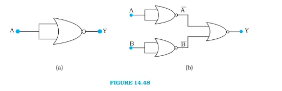 Question 19. Write the truth table for the circuits given in Fig. $14.48$ consisting of NOR gates only. Identify the logic operations (OR, AND, NOT) performed by the two circuits.
