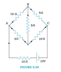 $\therefore$ The potential drop across $1 \Omega$ is $2 \mathrm{~V}, 2 \Omega$ is $4 \mathrm{~V}$, and $3 \Omega$ is $6 \mathrm{~V}$.