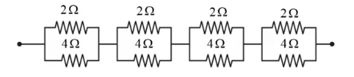 Hence, the equivalent resistance of the given circuit is $\frac{4}{3} \times 4=\frac{16}{3} \Omega$