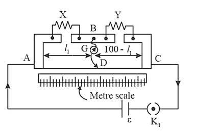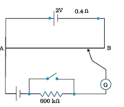 (b) High resistance of $600 \mathrm{k} \Omega$ is used to lower the current flow through the galvanometer when the movable contact is far from the balance point.