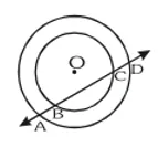 Q4. If a line intersects two concentric circles (circles with the same centre) with centre $\mathrm{O}$ at $\mathrm{A}$, $\mathrm{B}, \mathrm{C}$ and $\mathrm{D}$, prove that $\mathrm{AB}=\mathrm{CD}$ (see fig).