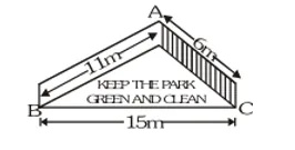 Q3. There is a slide in a park. One of its side walls has been painted in some colour with a message "KEEP THE PARK GREEN AND CLEAN" (see Fig.). If the sides of the wall are $15 \mathrm{~m}, 11$ $\mathrm{m}$ and $6 \mathrm{~m}$, find the area painted in colour.