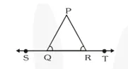 Q3. In figure, $\angle \mathrm{PQR}=\angle \mathrm{PRQ}$, then prove that $\angle \mathrm{PQS}=\angle \mathrm{PRT}$.