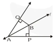 Q5. Line $\ell$ is the bisector of an angle $\angle \mathrm{A}$ and $\mathrm{B}$ is any point on $\ell$. BP and $\mathrm{BQ}$ are perpendiculars from $\mathrm{B}$ to the arms of $\angle \mathrm{A}$. Show that :