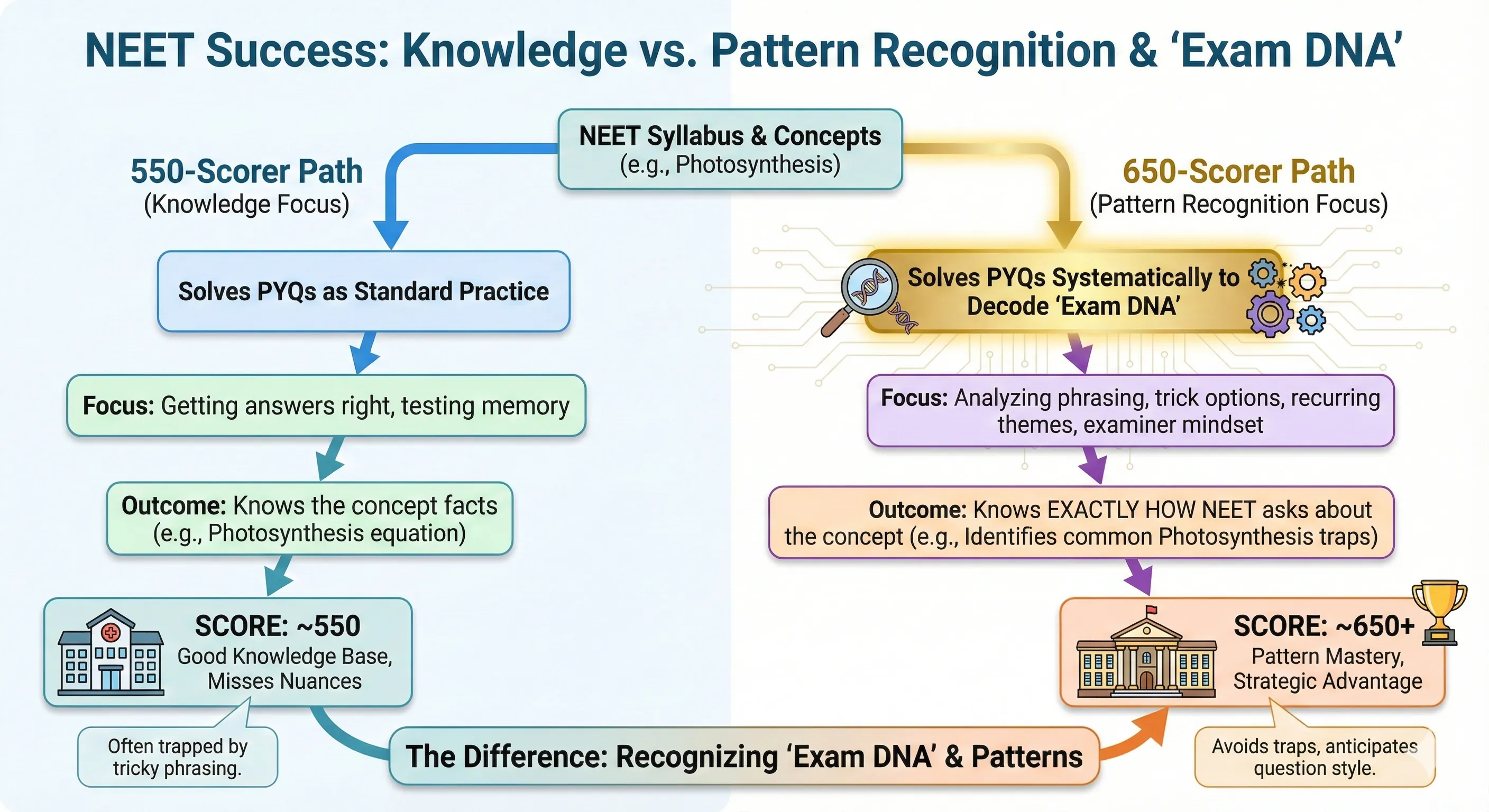 The 550-scorer knows photosynthesis. The 650-scorer knows exactly how NEET asks about photosynthesis.